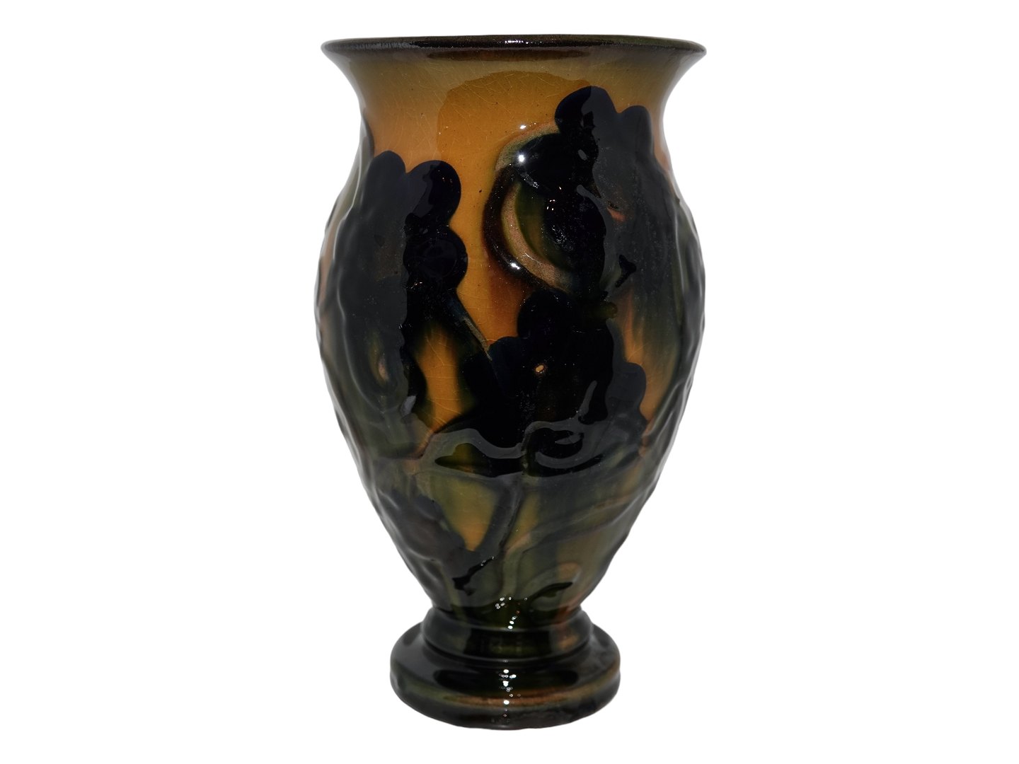 Kähler keramik, vase dekoreret med gul, blå og grønne farver. Vasen er produceret i starten af 1900 tallet. Højde 21,0 cm. Perfekt stand.