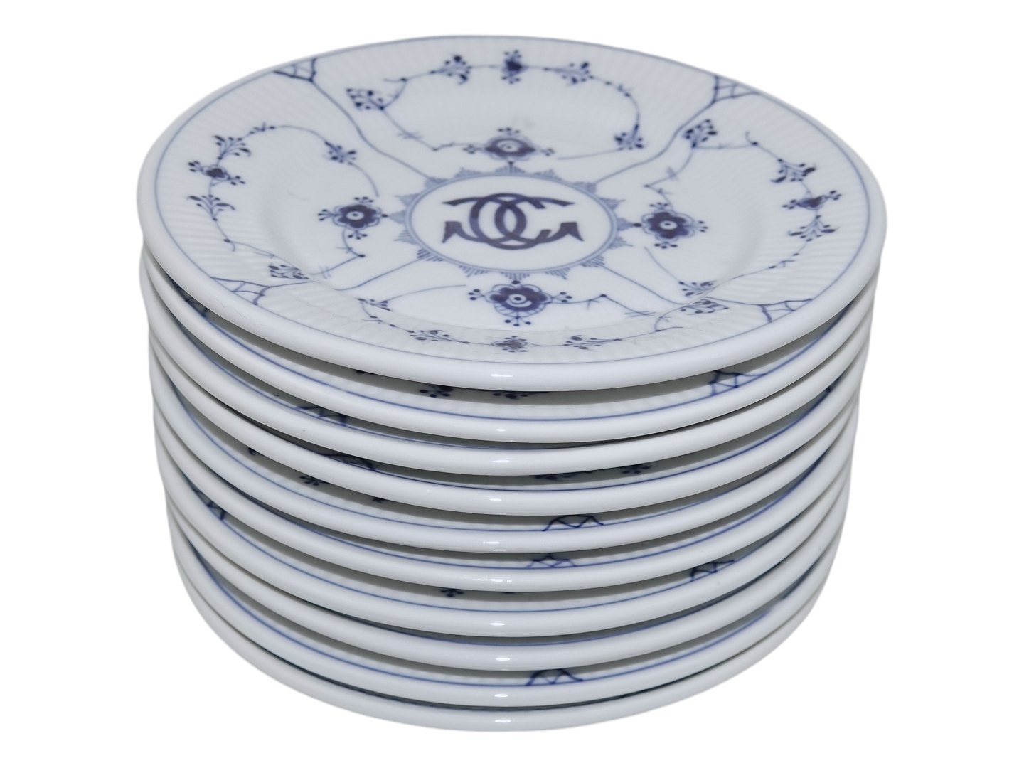 Royal Copenhagen Blue Fluted Plain Hotel porcelain, large side plate with logo.