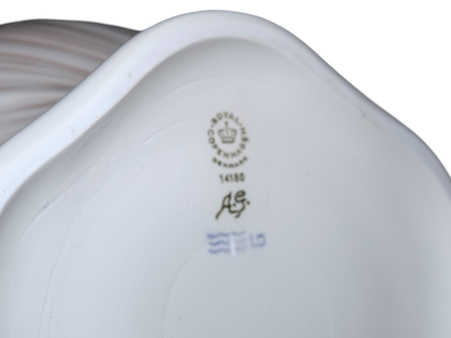 Royal Copenhagen Rosa Konkylie, suppeterrin der mangler et låg.