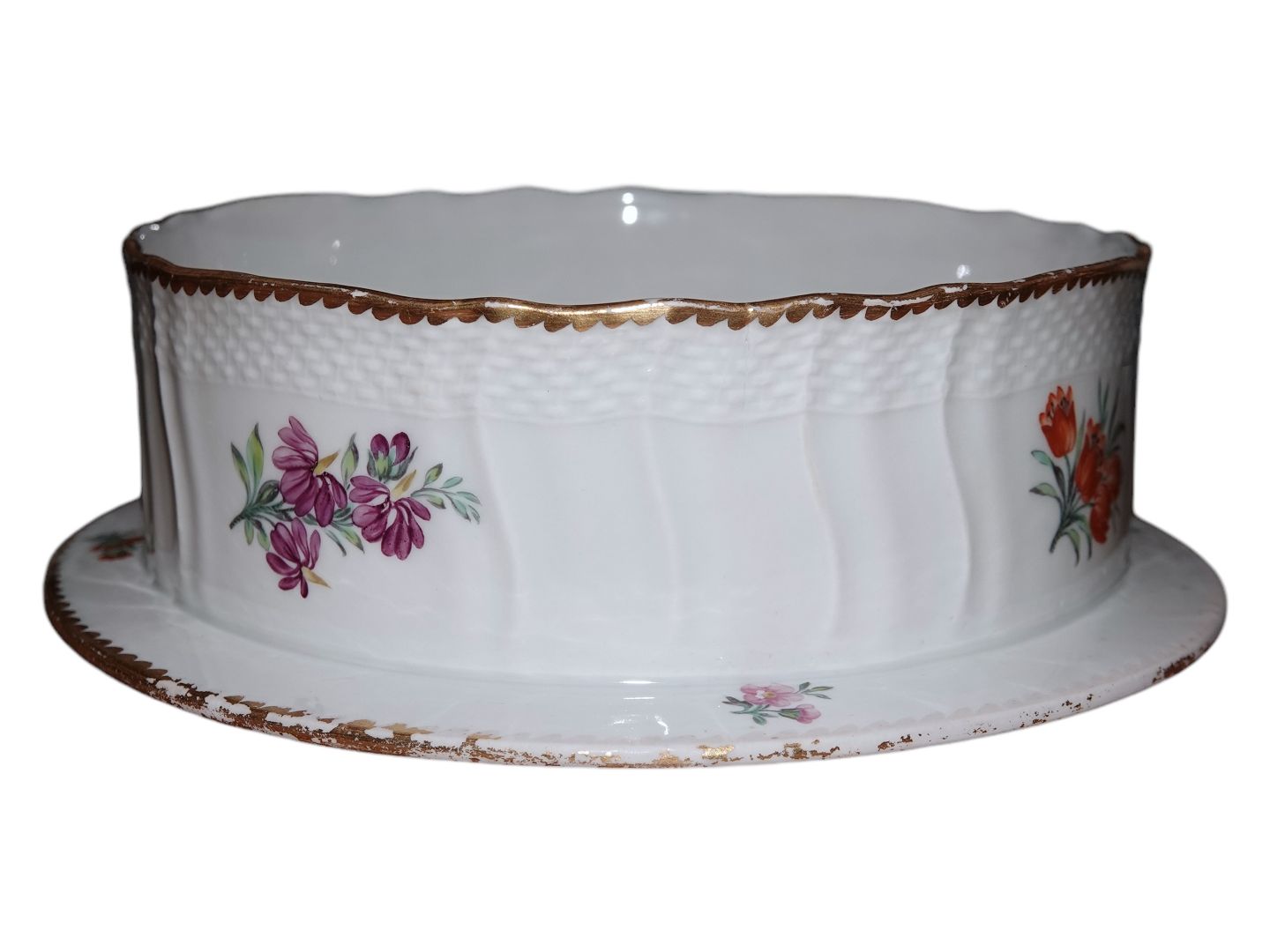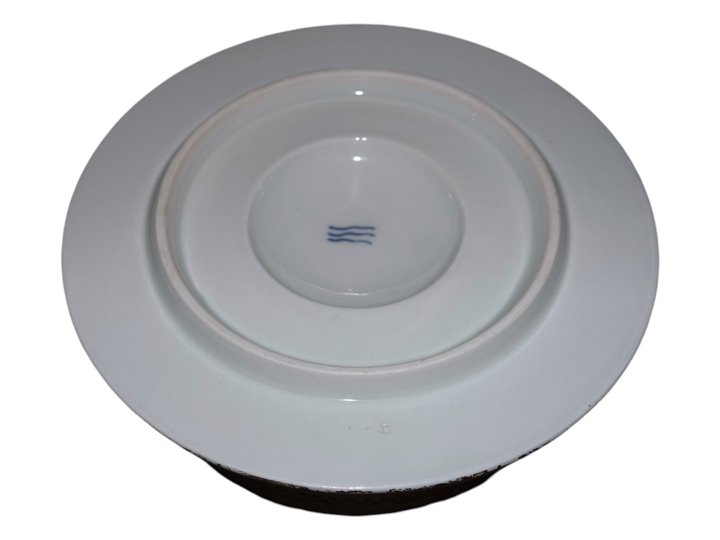 Inside the bowl a piece of the center decoration has broken off and the bottom rim has wear on the gold edge, please see the pictures, otherwise excellent condition.