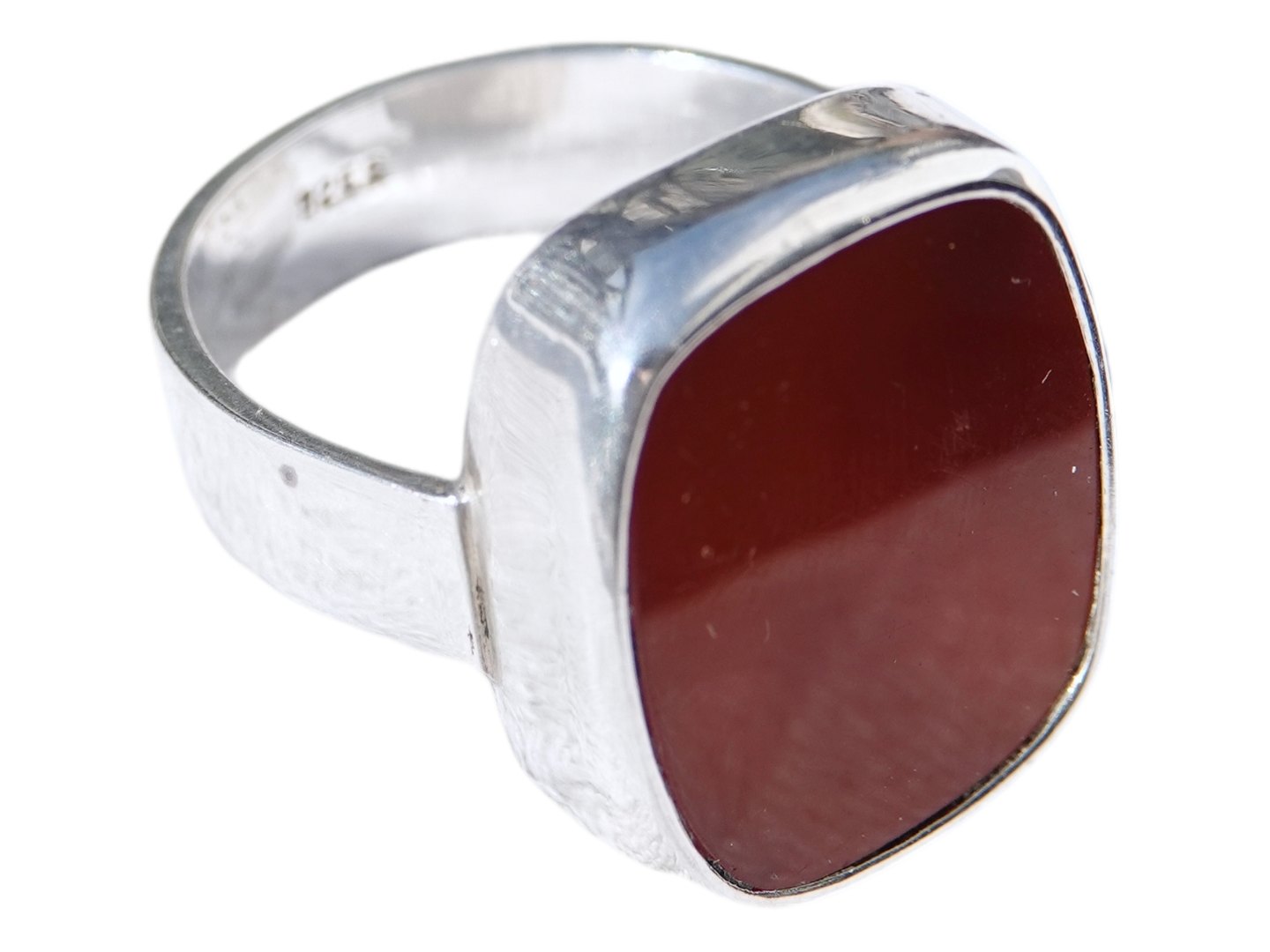 Large mens ring in sterlingsilver with carnelian stone from around 1970 to 1980. Hallmarked "925S". Ring size 66. Excellent condition.