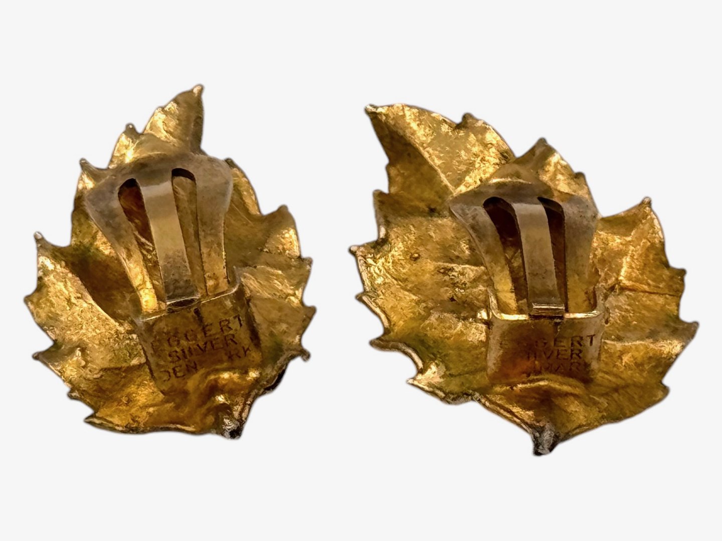 Flora Danica øreclips i forgyldt sterlingsølv.
