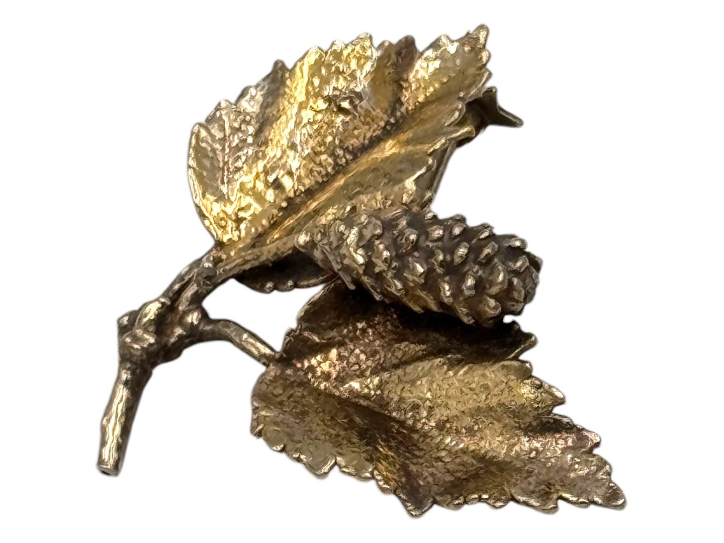 Flora Danica broche i kraftig kvalitet og udført i forgyldt sterlingsølv Designet af Leo Askhim. Stemplet "ASKHIM 925S DENMARK". Måler 4,0 x 3,7 cm. Fin stand.
