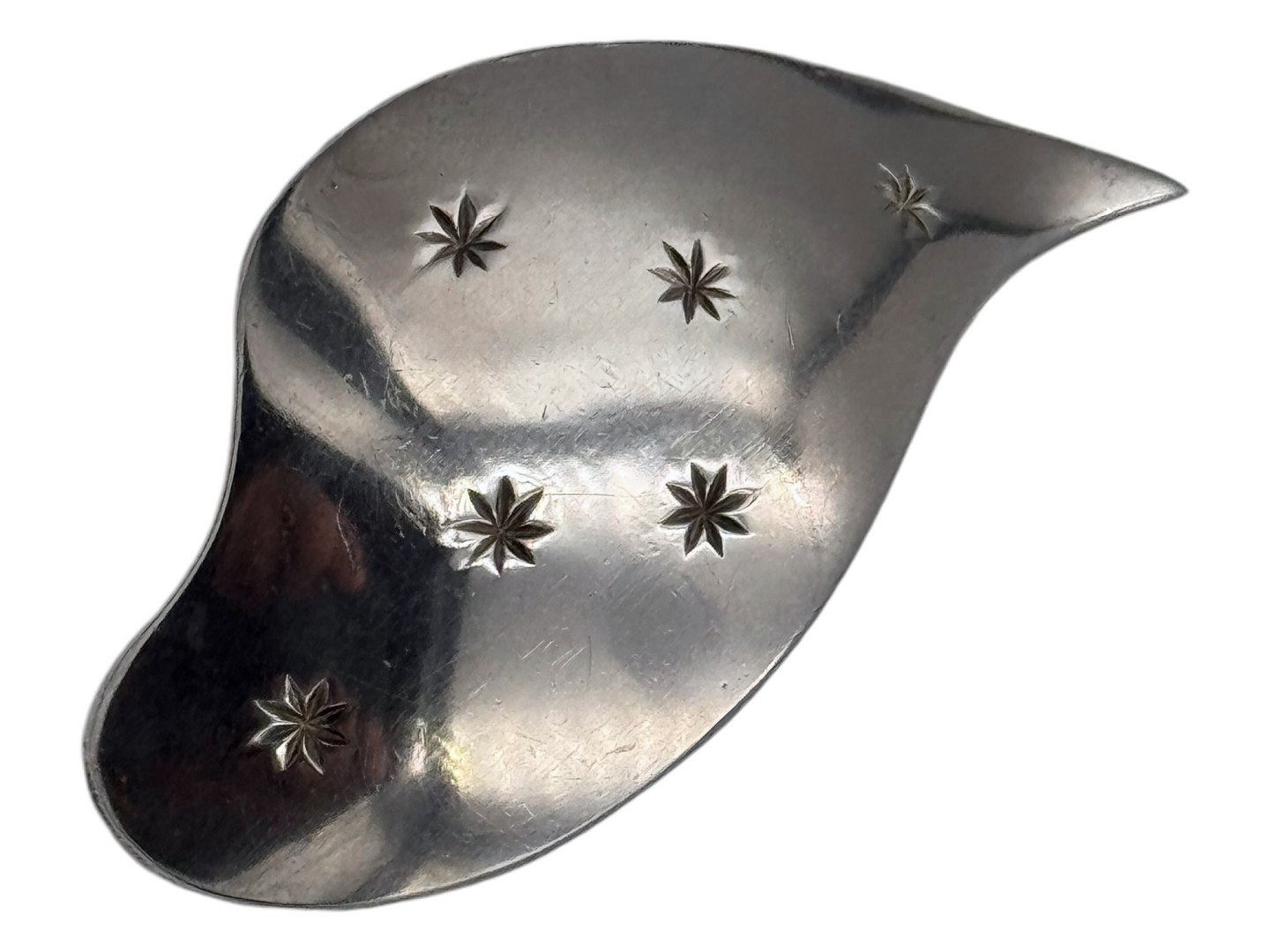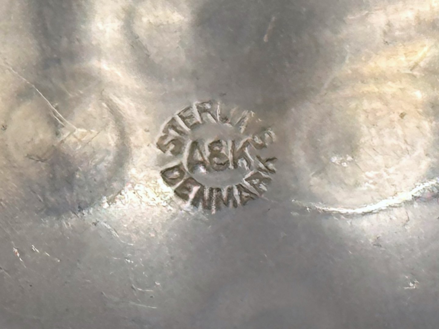 Hallmarked "830S A&K". Aarre & Krogs Eftf. was a silversmith in Randers from 1949 until 1990.