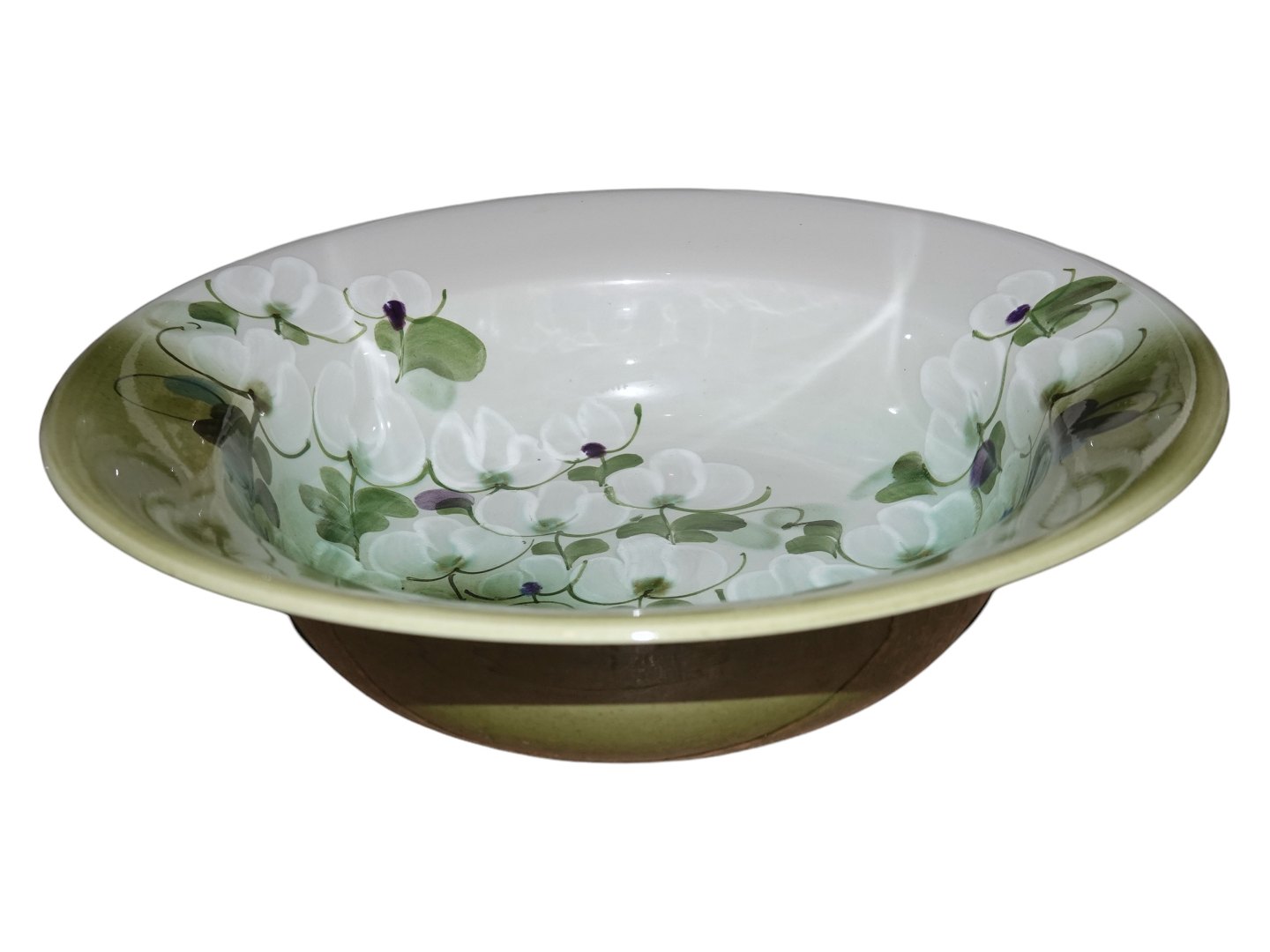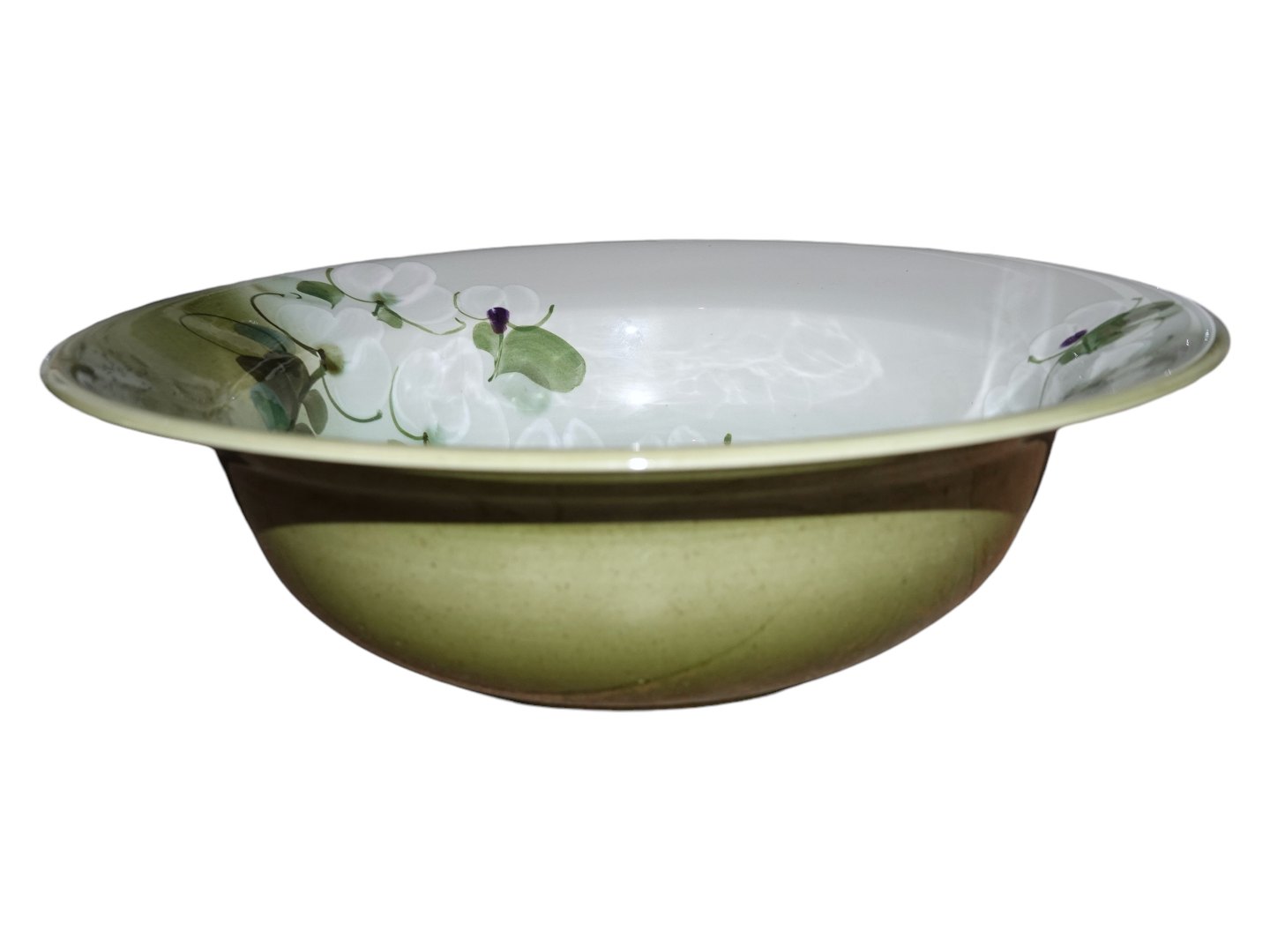 Royal Copenhagen large unique, green Tenera bowl with purple and blue flowers.