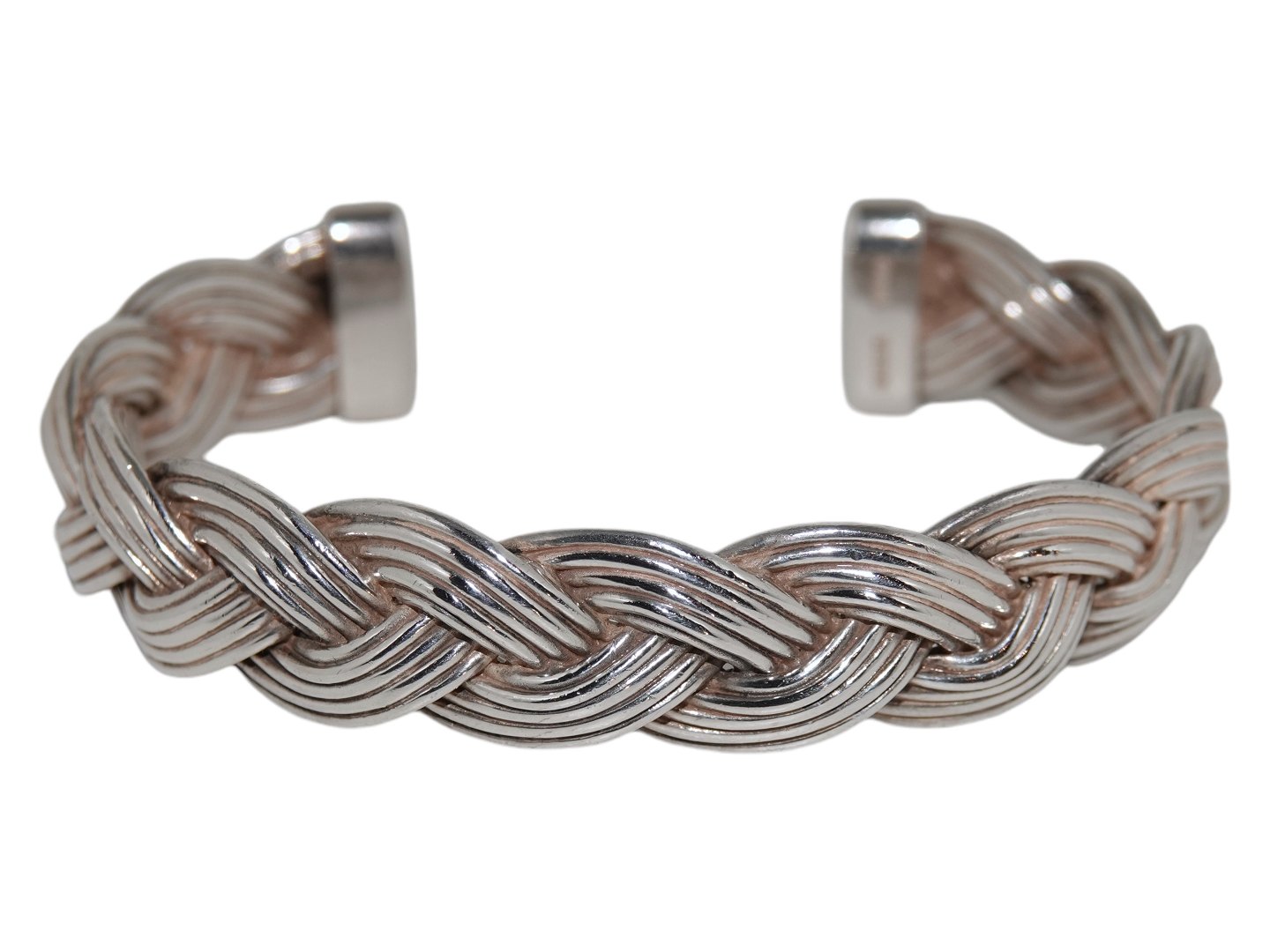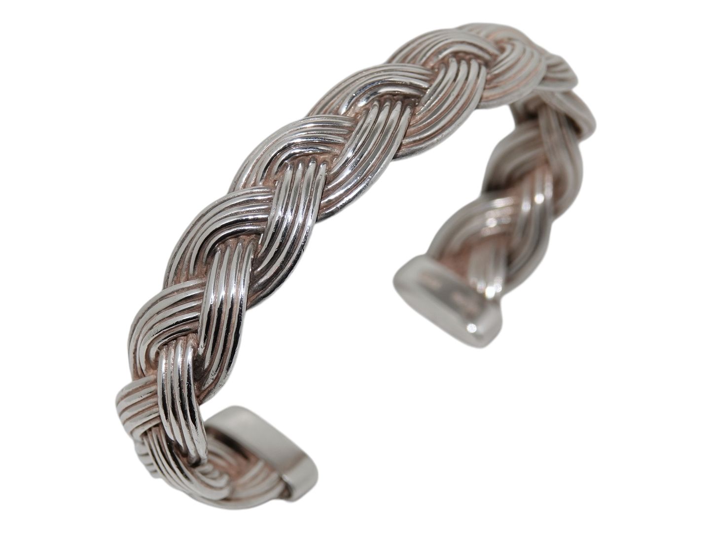 Ole Lynggaard sterling silver, braided bracelet in heavy quality. Hallmarked "OleL 925S". Inside diameter 7.5 cm., width 1.5 cm. Excellent condition.