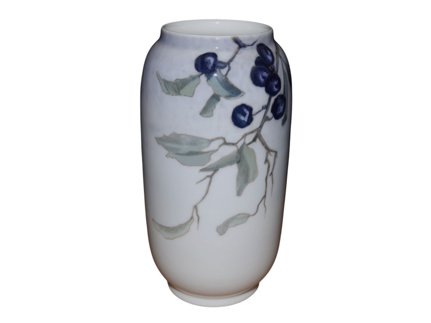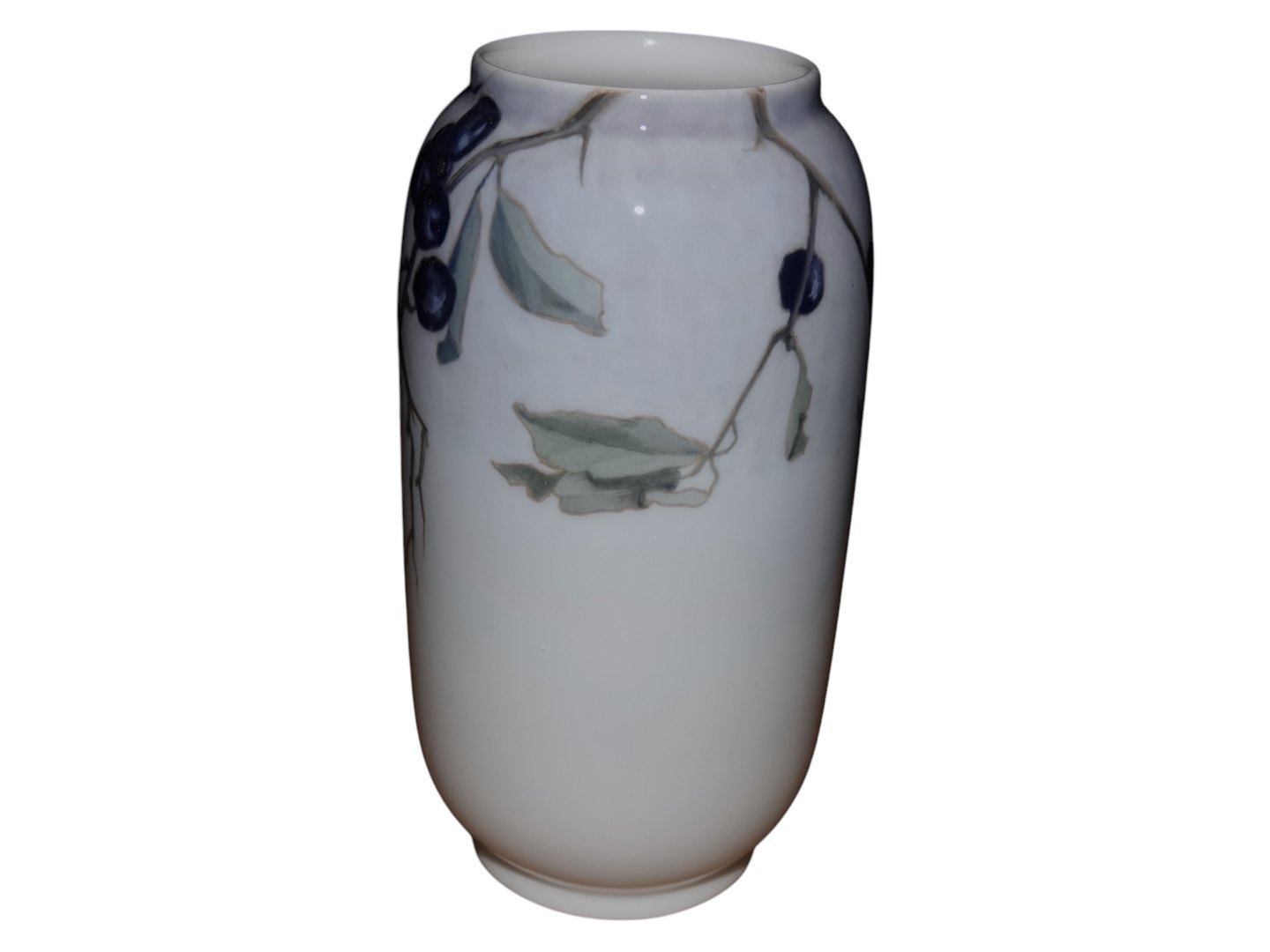 Royal Copenhagen Art nouveau vase dekoreret med blåbær.