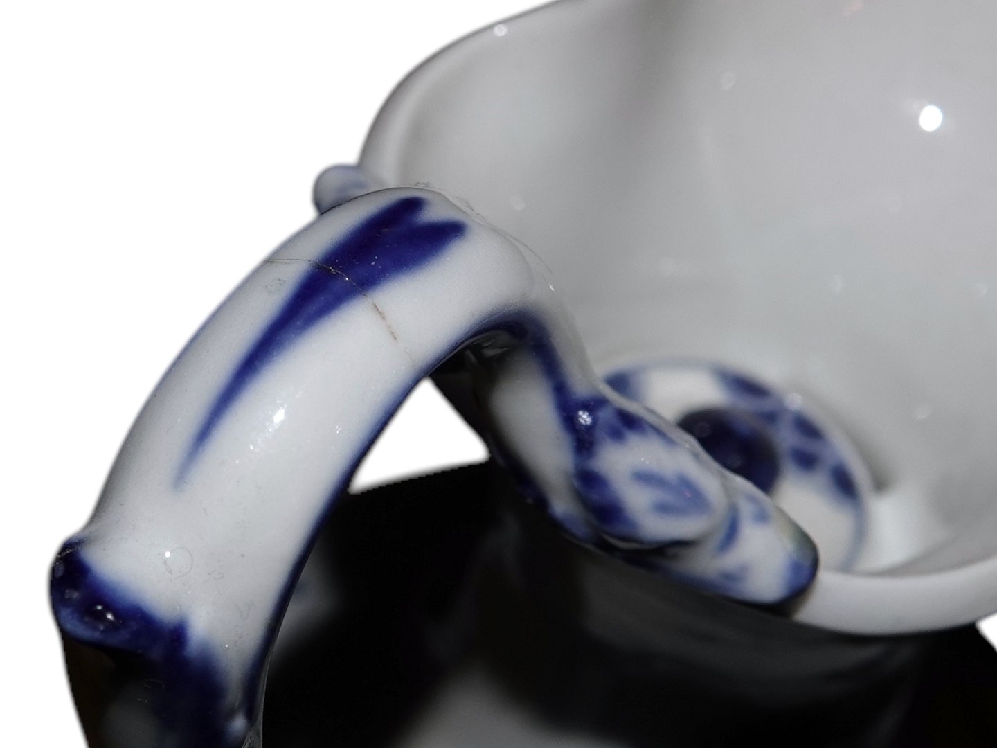 There is a crack at the handle, please see pictures, otherwise perfect condition with no chips, cracks or repairs.