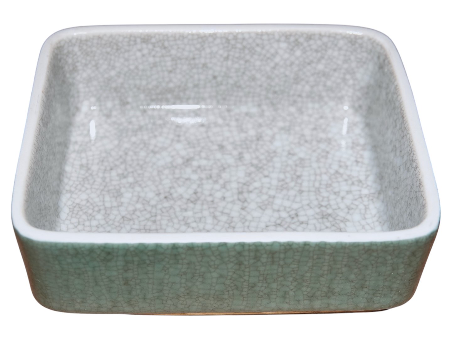 Green Craquele square lidded bowl