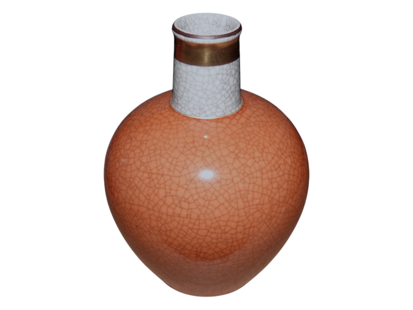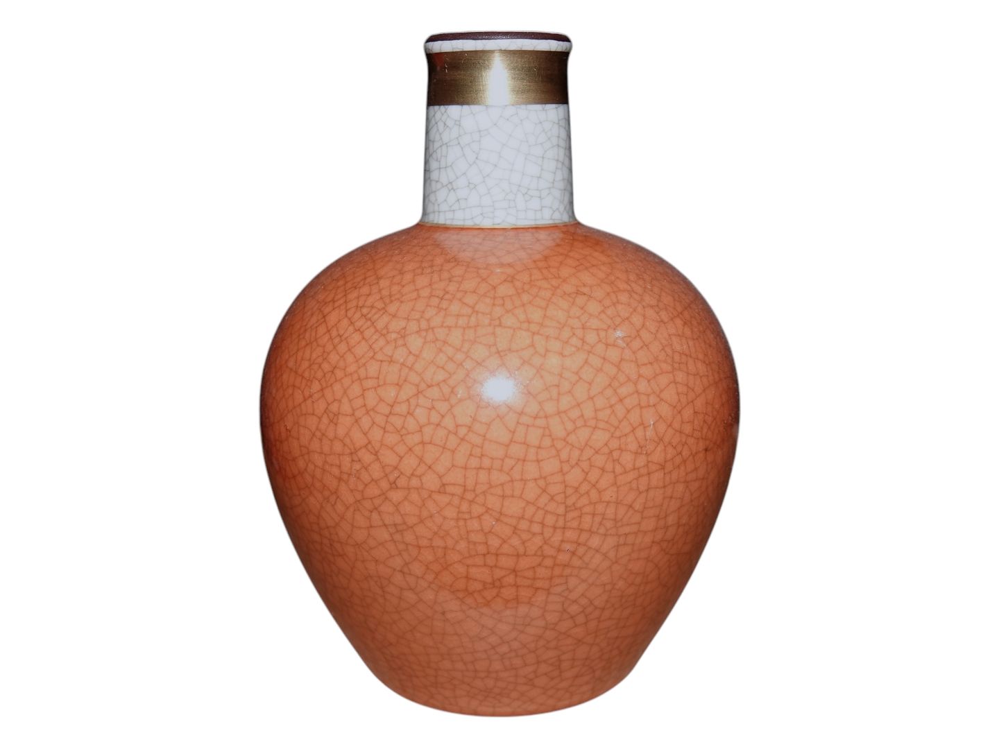 Royal Copenhagen Craquele (Krakele), lille orangerød vase.