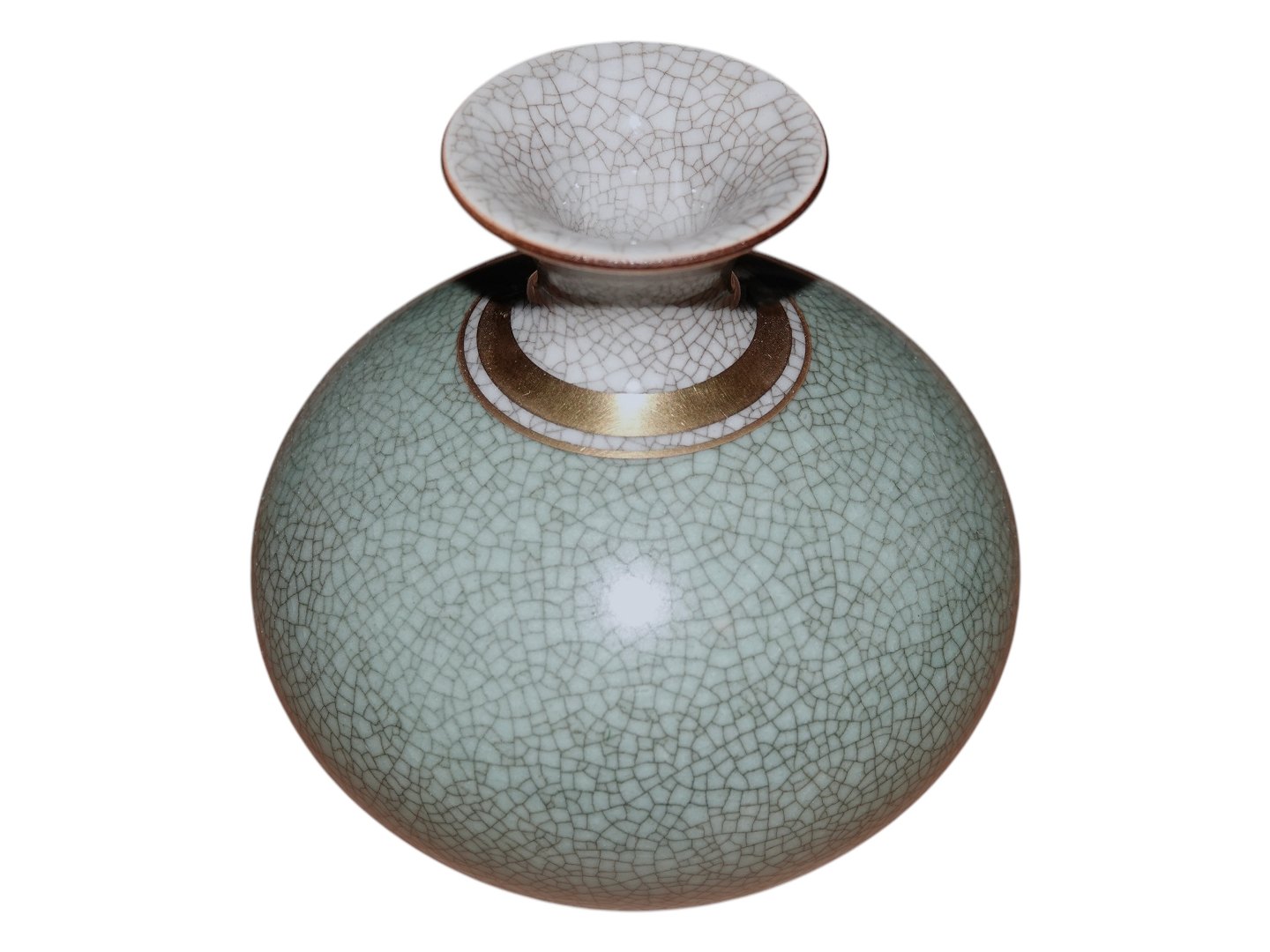 Royal Copenhagen Craquele (Krakele), lille grøn vase.