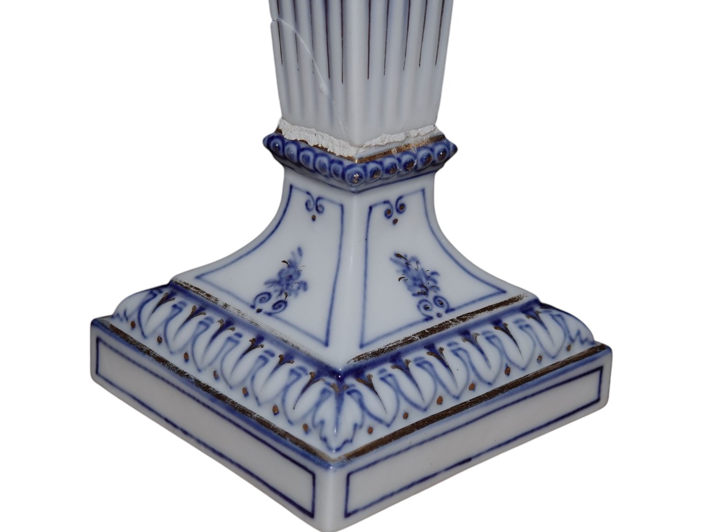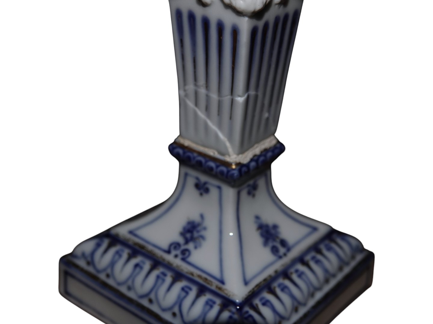 Royal Copenhagen Blue Fluted Plain with gold edge, candlelight holder with lion's heads.