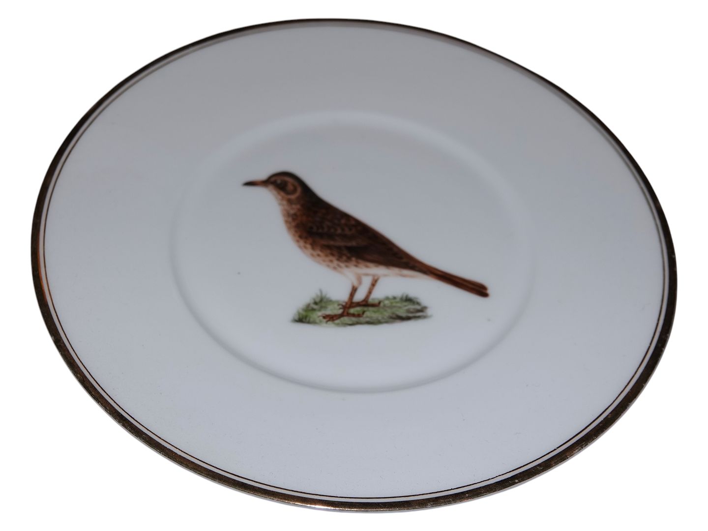 Royal Copenhagen frokosttallerken med fugl og guldkant - "Vindrossel".