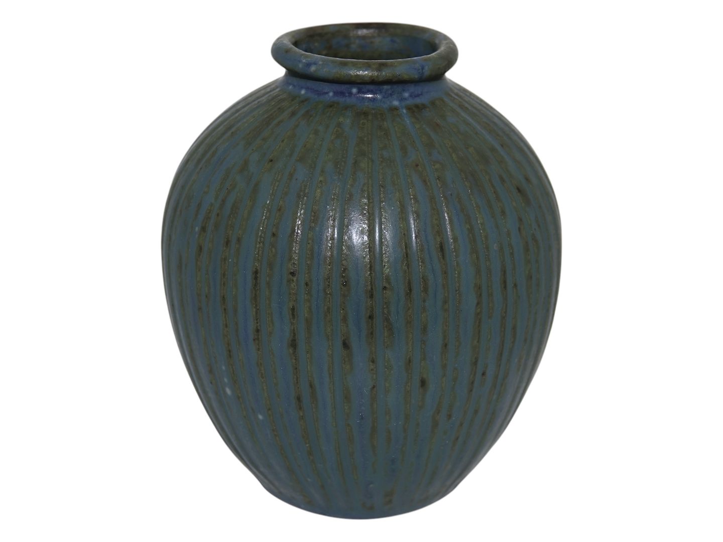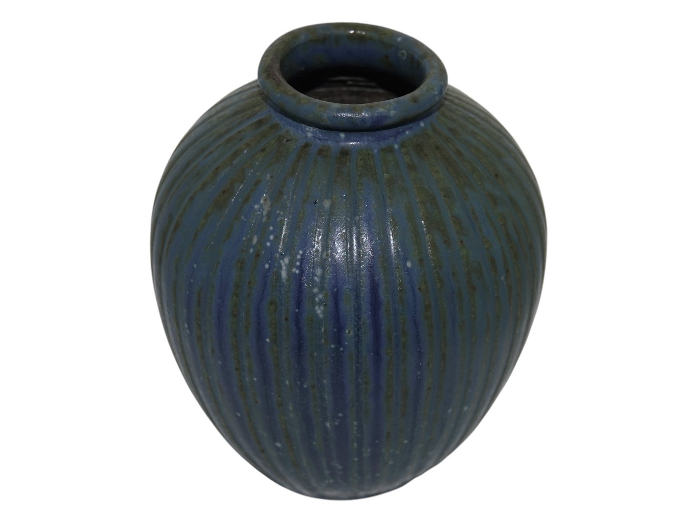 Arne Bang keramik, lille vase med riller og en flot glasur.