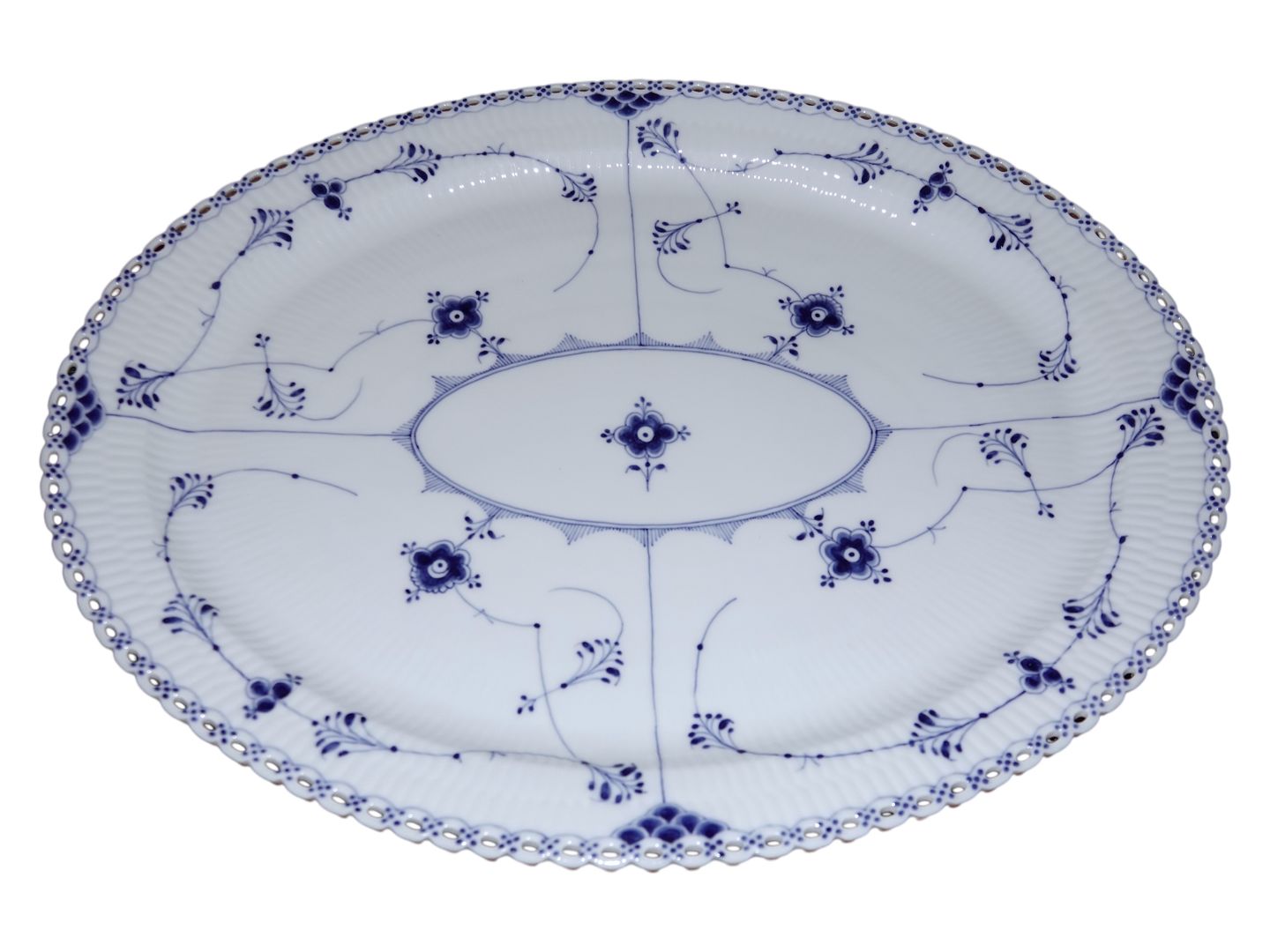 Royal Copenhagen Blue Fluted Full Lace, extra large platter. Decoration number 1/1151. This was produced in 1944. Factory first. Length 47.0 cm. Perfect condition with no chips, cracks or repairs.