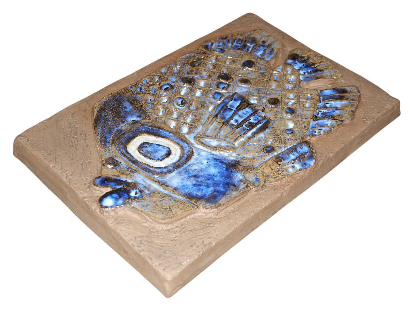 Aluminia - Royal Copenhagen keramik, relief med blå fisk.