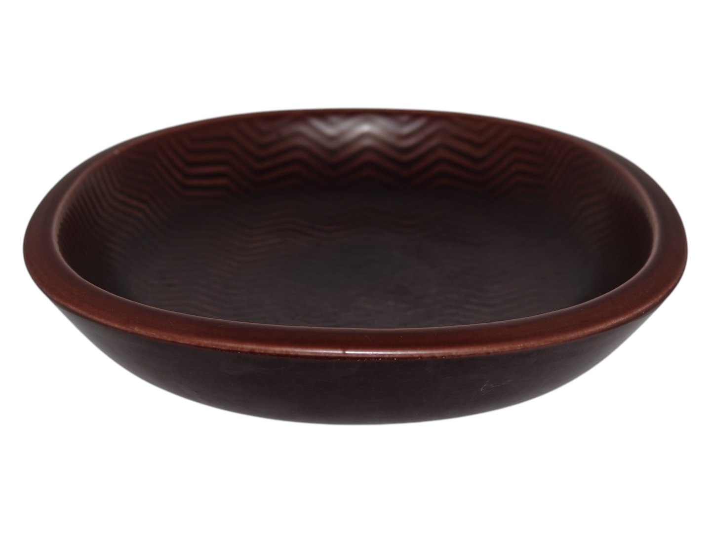 Aluminia Marselis kunstfajance, bordeaux asiet. Designet af Nils Thorsson. Dekorationsnummer 2635. Medarbejdersortering. Måler 18,5 x 18,1 cm. Der er lidt overfladeridser i glasuren. Ellers fejlfri.