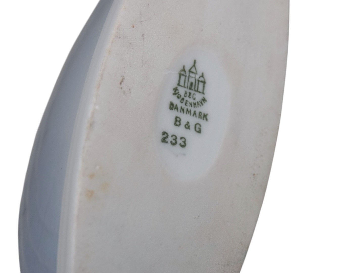Bing & Grøndahl Måge uden guldkant, servietholder. Stemplerne viser, at denne er fra mellem 1948 og 1952. Dekorationsnummer 233. 2. sortering. Længde 11,5 cm. Perfekt stand uden fejl.