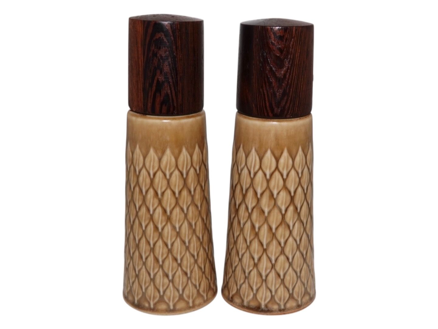 Kronjyden Relief stoneware, large salt shaker and pepper grinder.