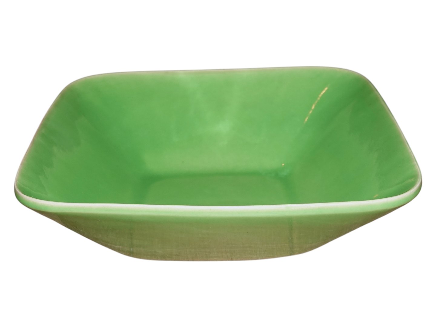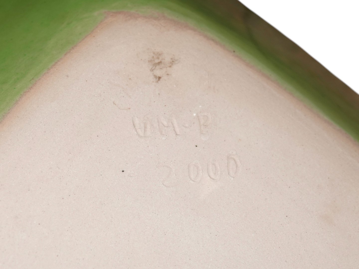 Ursula Munch-Petersen keramik, stor firkantet grøn skål fra år 2000.