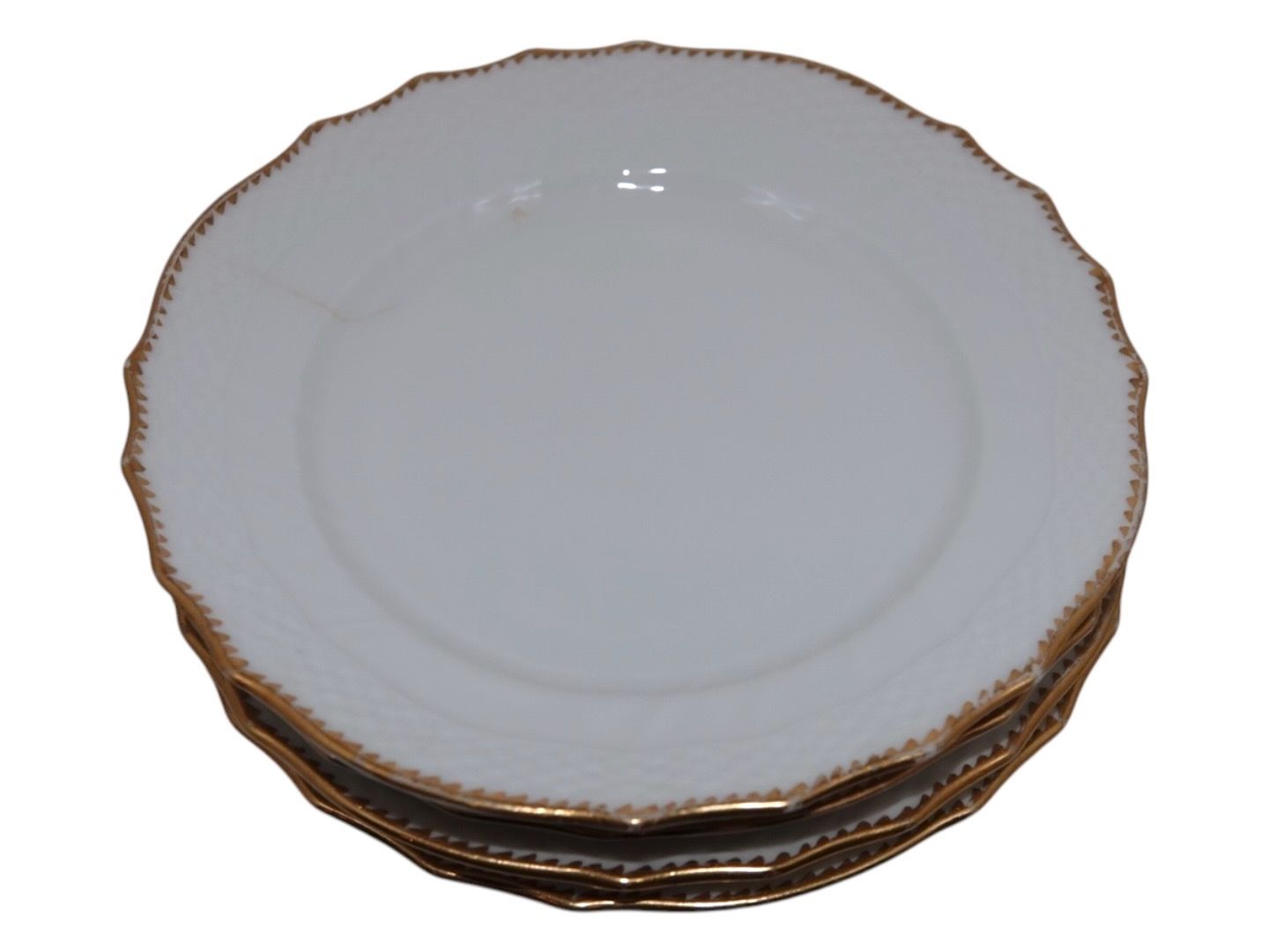 Royal Copenhagen White Curved with gold edge, side plate. Decoration number 387/1626. Diameter 15.8 cm. There is slight wear on the gold edges otherwise they are in perfect condition with no chips, cracks or repairs.