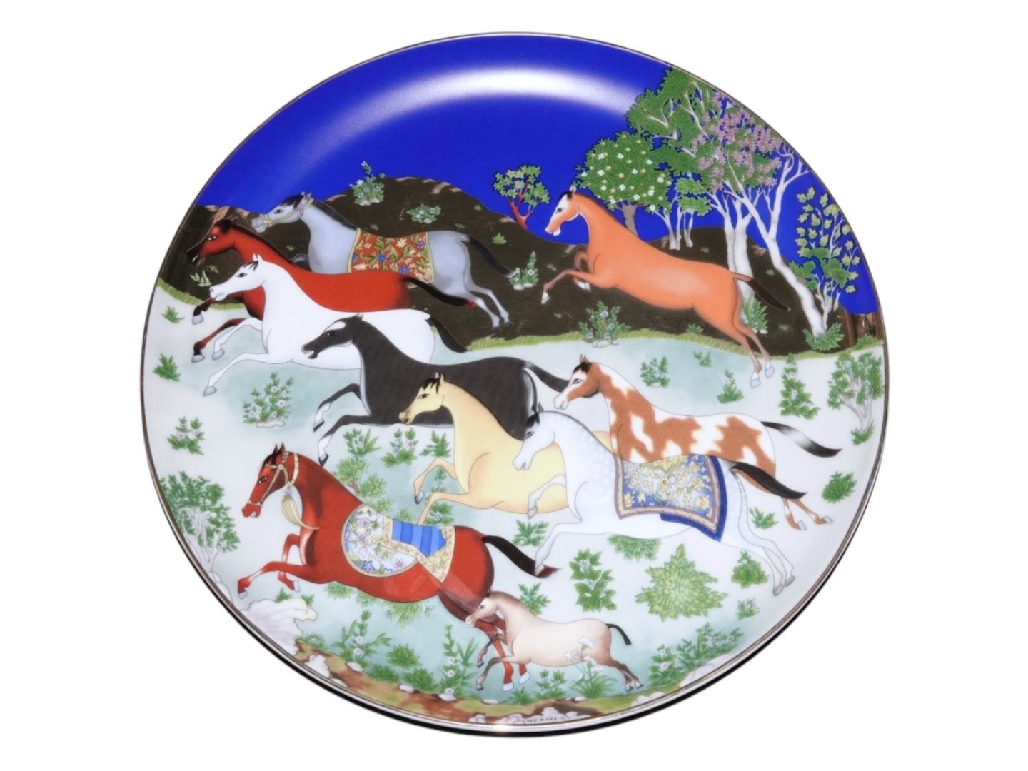Hermes Paris Franrkig, Cheval d'Orient, stort rundt tærtefad. Diameter 31,7 cm. Perfekt stand.