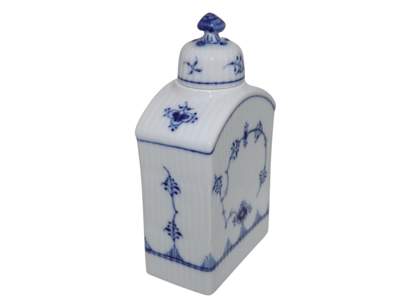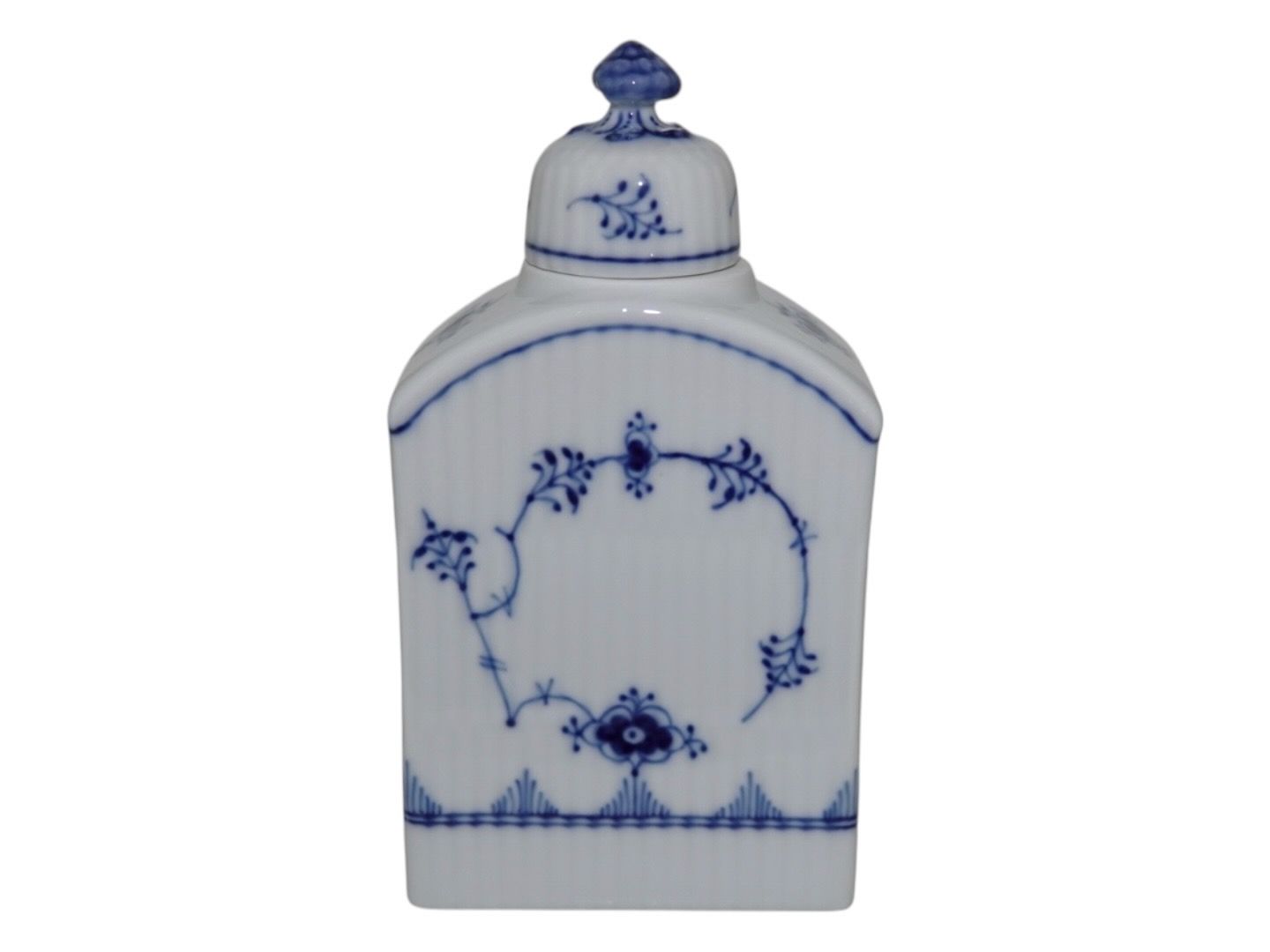 Royal Copenhagen Musselmalet Riflet, større tedåse med låg.