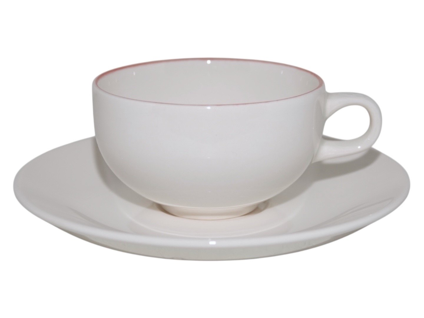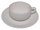 Royal Copenhagen Red Line (Red top), small espresso cup with matching saucer. Designed by Grethe Meyer. The cup measures 6.9 cm. across. Perfect condition with no chips, cracks or repairs.