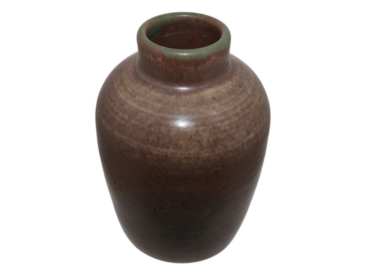 Dahl Jensen keramik vase med grøn topkant. Dahl Jensen lavede keramik i perioden 1925 til 1928. Vasen er stemplet med "DJ COPENHAGEN" samt "1111-11". 1. sortering. Højde 16,3 cm. Perfekt stand uden fejl.