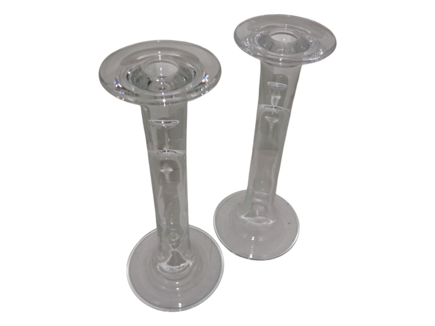 Holmegaard Merkur lysestage i klart glas med en luftbobbel i stilken. Designet af Michael Bang i 1984. Højde 24,0 cm. Perfekt stand.