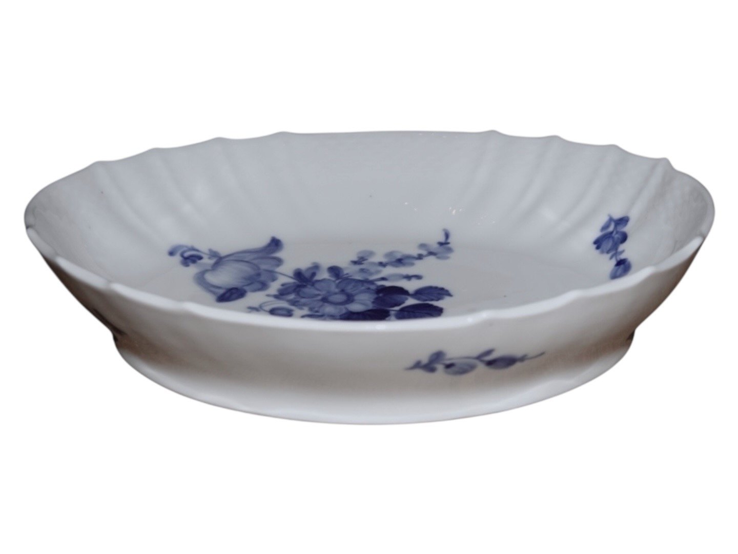Royal Copenhagen Blå Blomst Svejfet, sjælden set oval skål.