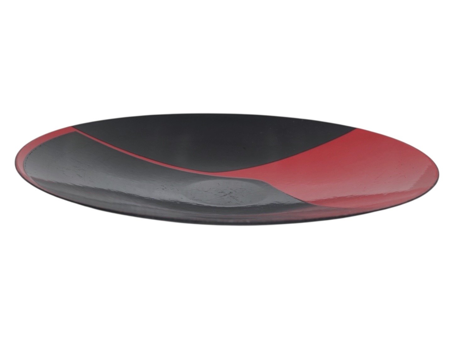 Ib Geertsen stort emaljefad med sort og rød dekoration.
