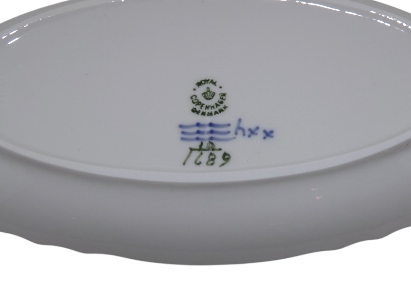 Royal Copenhagen Blå Blomst Svejfet, asiet. Fabriksmærket viser, at denne er produceret i mellem 1980 og 1984. Dekorationsnummer 10/1689. 2. sortering. Længde 23,6 cm. Perfekt stand uden fejl.
