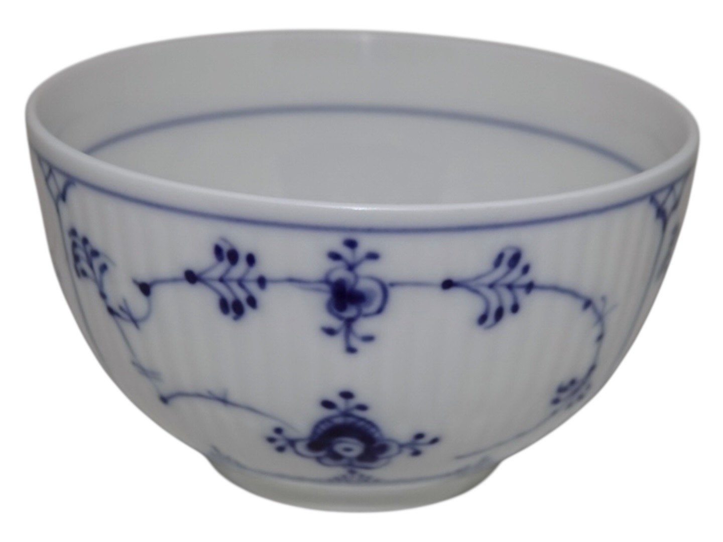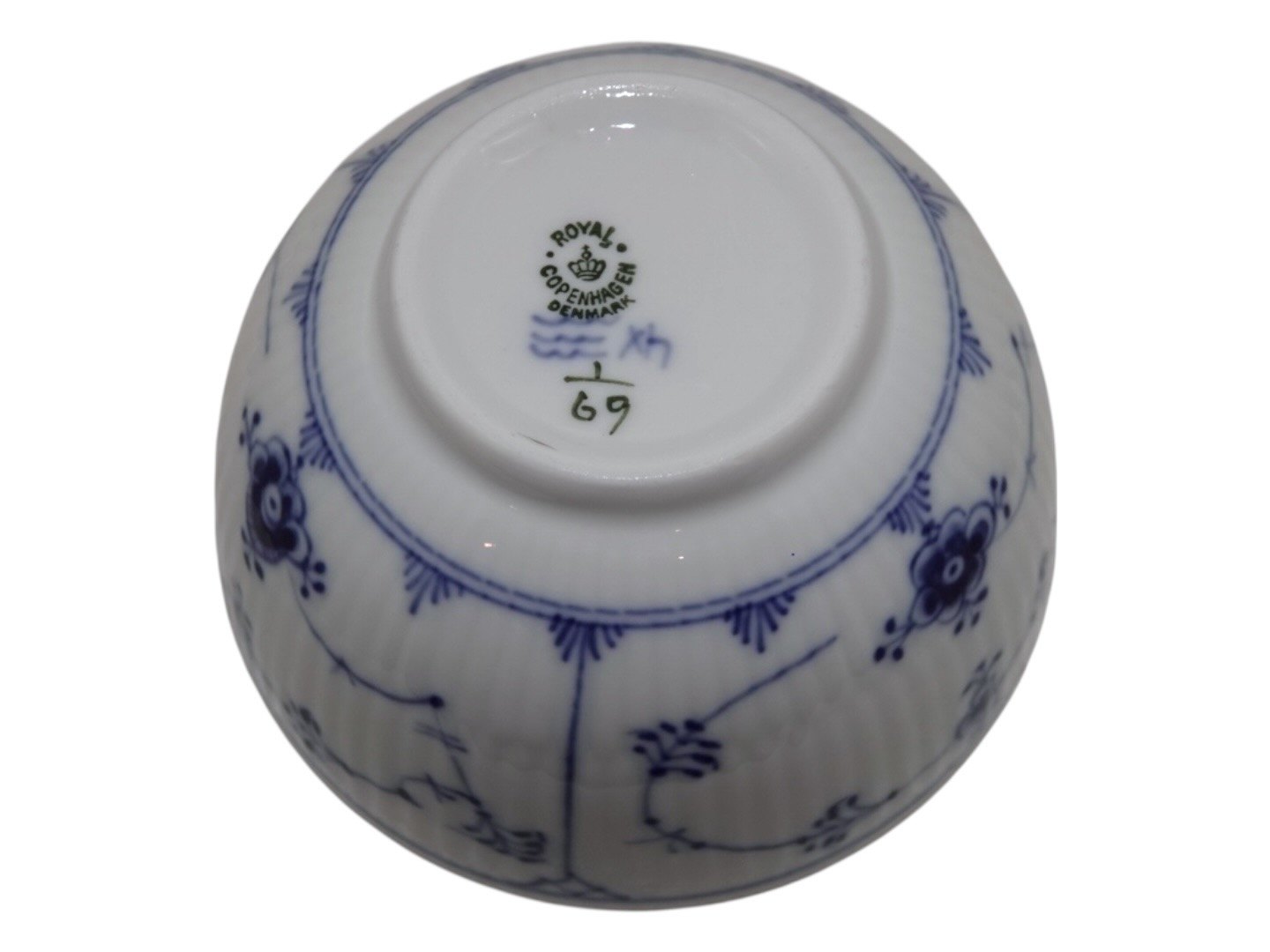 Royal Copenhagen Musselmalet Riflet, lille rund skål. Af fabriksmærket ses det, at denne er produceret i 1954. Dekorationsnummer 1/69. 1. sortering. Diameter 10,5 cm., højde 6,1 cm. Perfekt stand uden fejl.