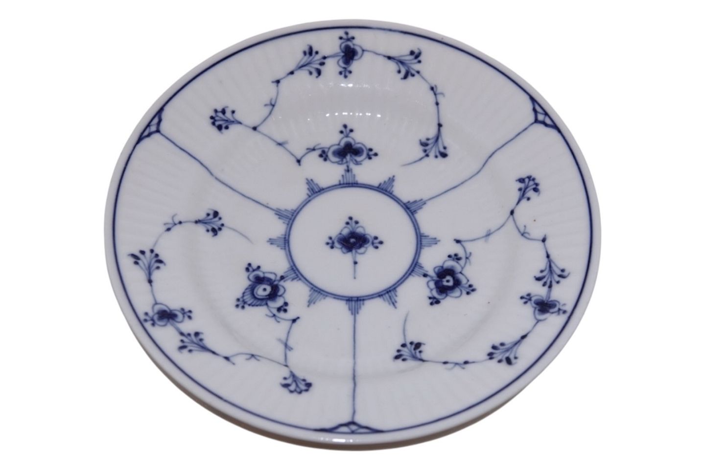 Bing & Grøndahl Blåmalet Riflet (Musselmalet Riflet), lille brødtallerken. Af fabriksmærket ses det, at disse er produceret mellem 1895 og 1898. 1. sortering. Diameter 13,7 cm. Perfekt stand uden fejl.