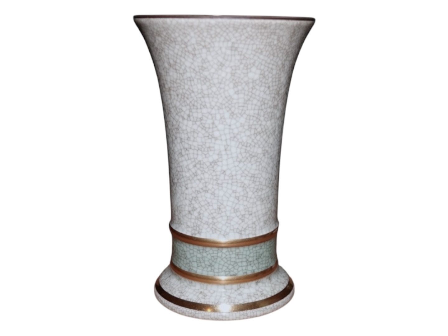 Royal Copenhagen Craquele (Krakele), vase med grøn dekoration.