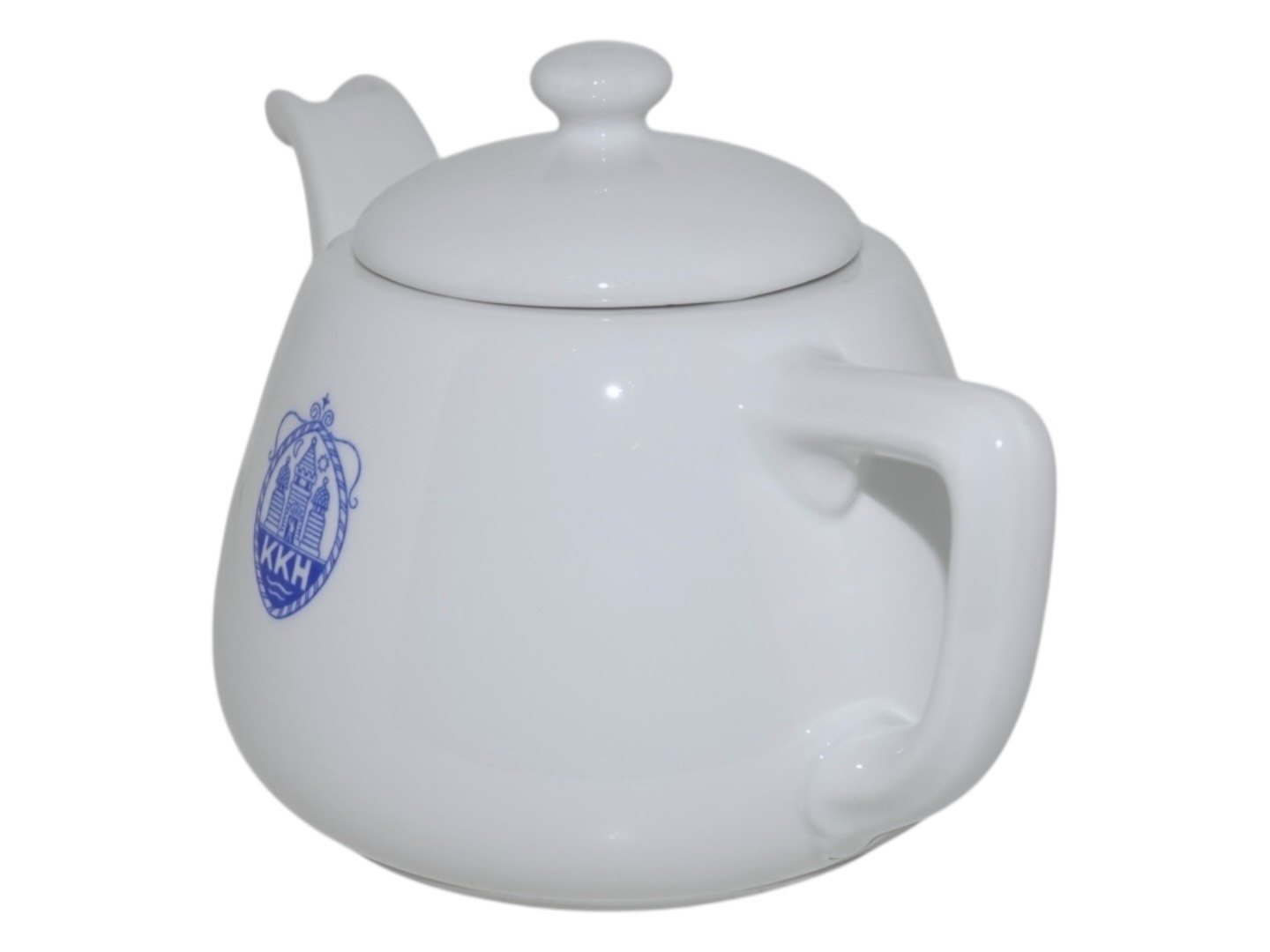 Royal Copenhagen small white teapot in thick porcelain with logo on the side (KKH = Københavns Kommune Hospital).