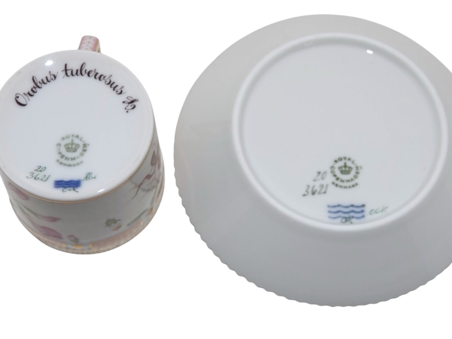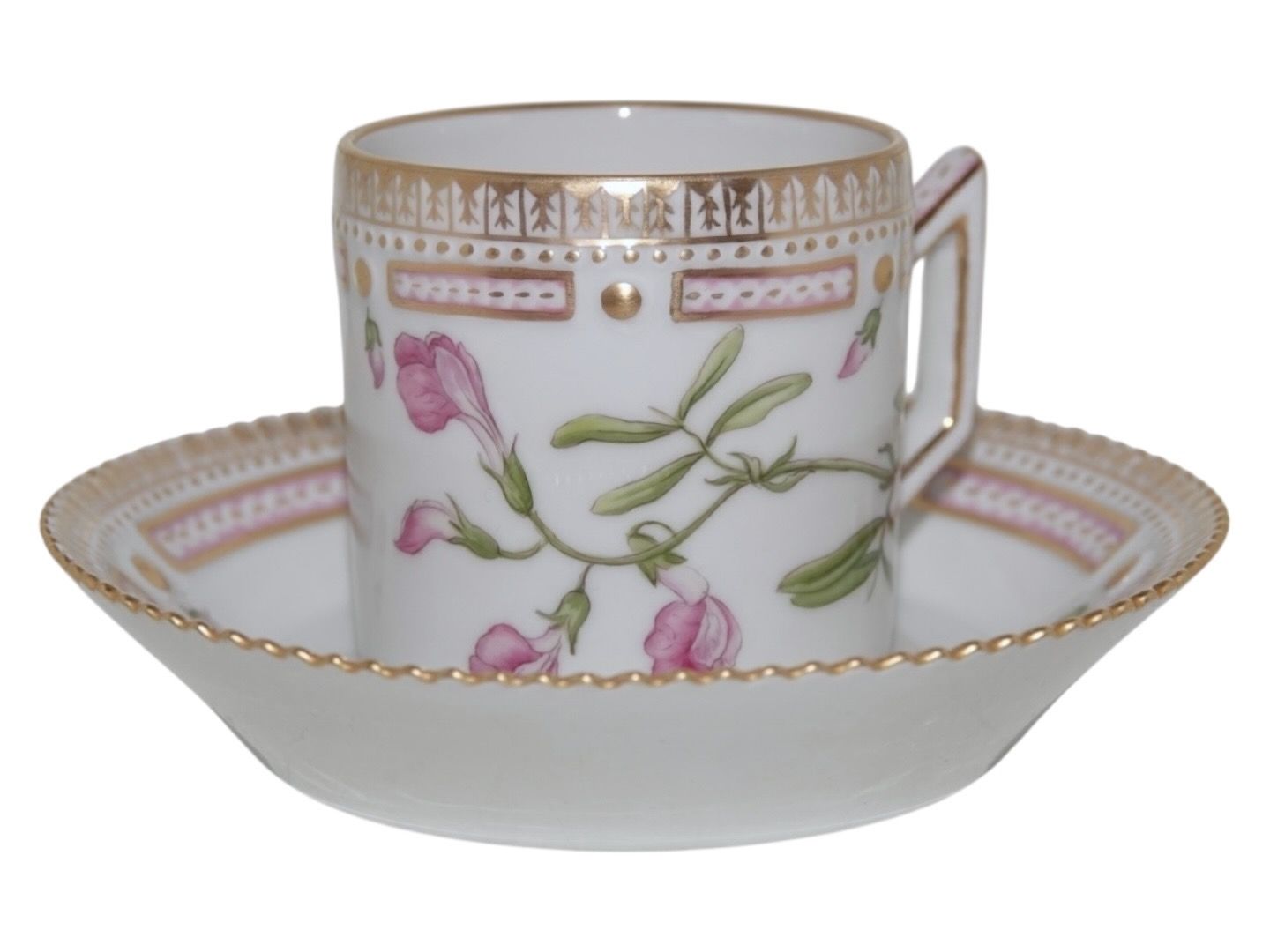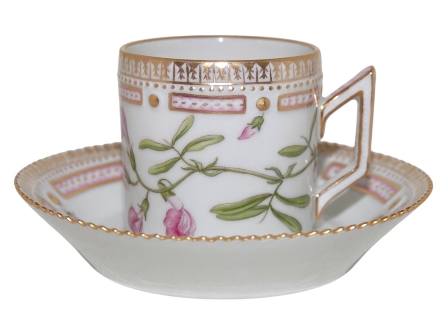 Royal Copenhagen Flora Danica, small demitasse cup with matching saucer.