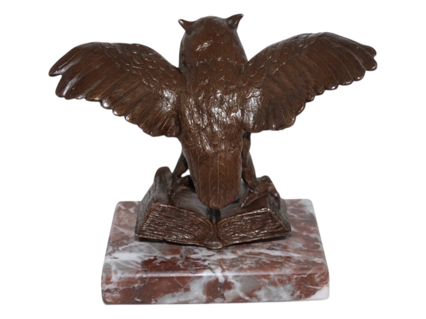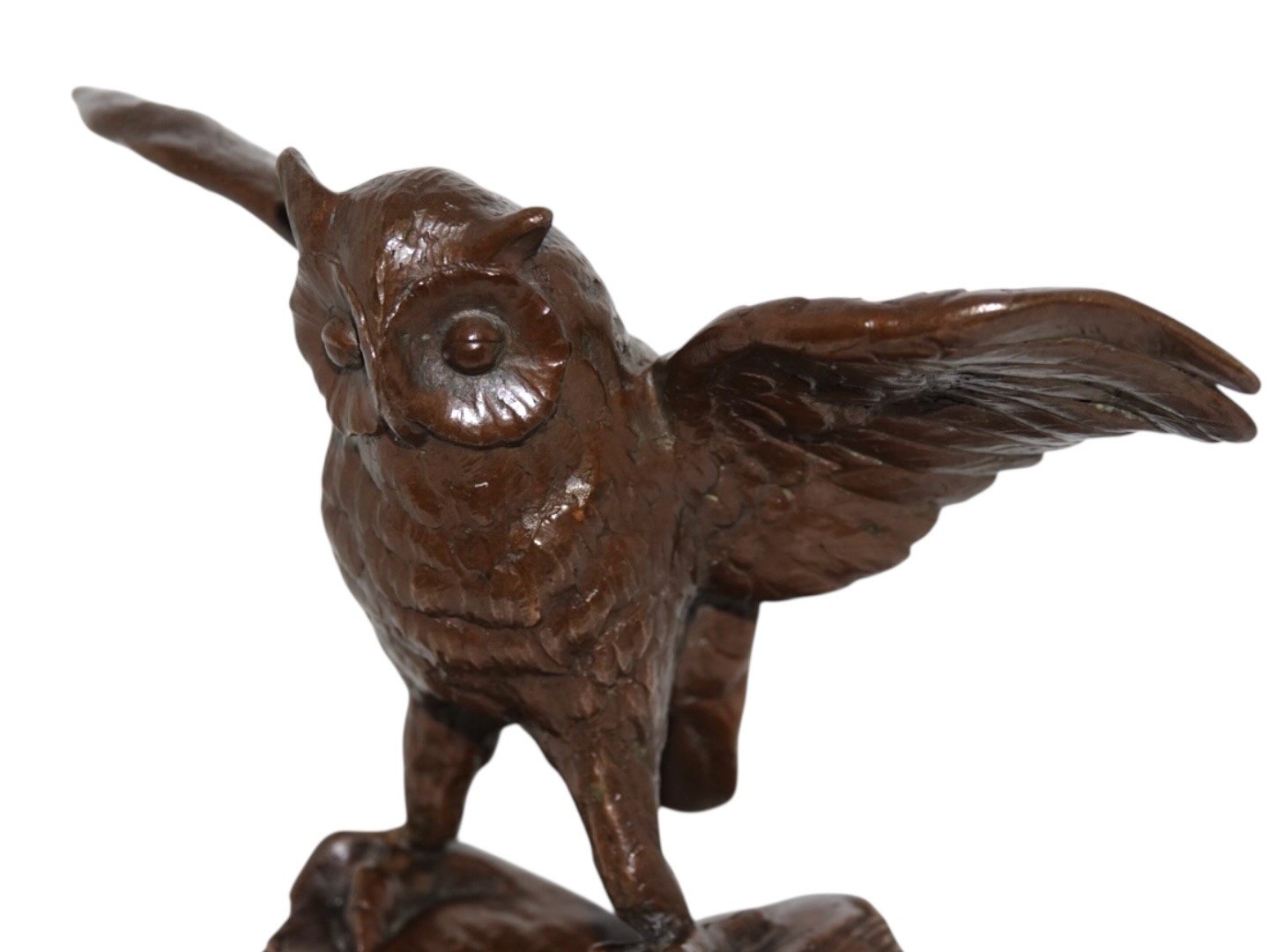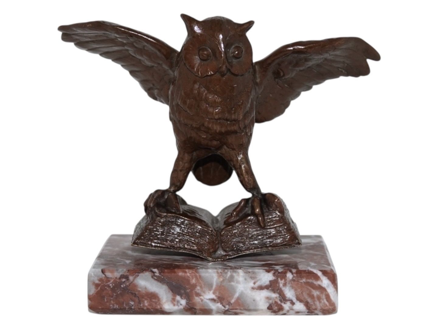 Bronze owl figurine on marble base.