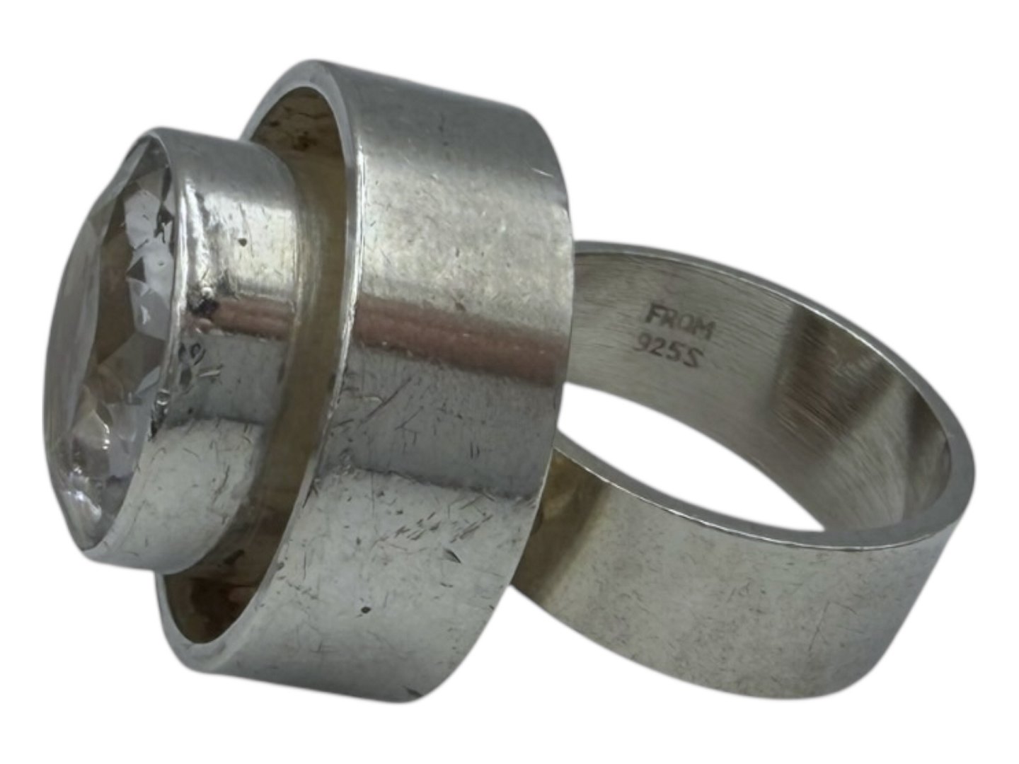 Niels Erik From sterlingsølv, stor ring med krystal.