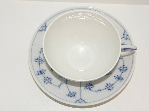 Royal Copenhagen Musselmalet Riflet, tekop med tilhørende underkop. Dekorationsnummer 1/76. Koppens diameter er 9,7 cm. Indeholder 18 cl. Perfekt stand.