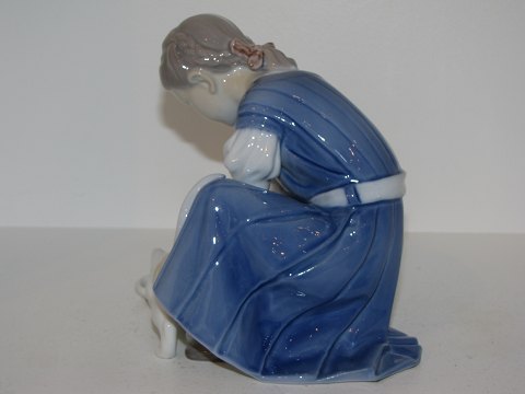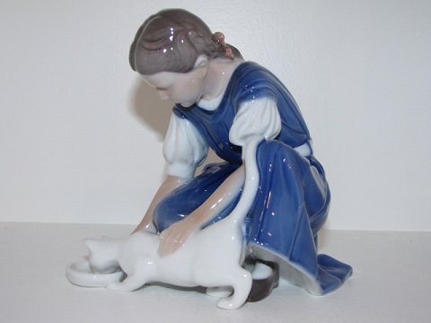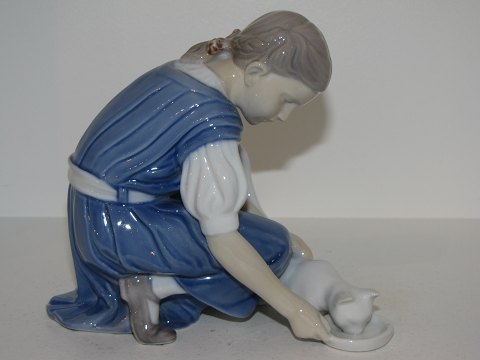Bing & Grøndahl Figur, Pige giver den hvide kat mælk. Dekorationsnummer 1745. Produceret mellem 1970 og 1983. 1. sortering. Måler 15 x 14 cm. Perfekt stand uden fejl.
