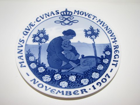 Royal Copenhagen mindeplatte fra 1907 udgivet i anledning af Dronning Louises vuggestue i Dansk Vestindien.