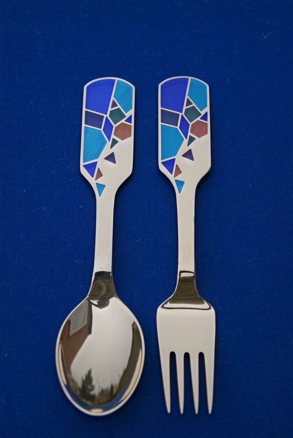 Michelsen Christmas spoon 1990 and Christmas fork 1990 in gilt sterling silver. Anton Michelsen set of Christmas spoon and Christmas fork 1990 in a very fine condition.