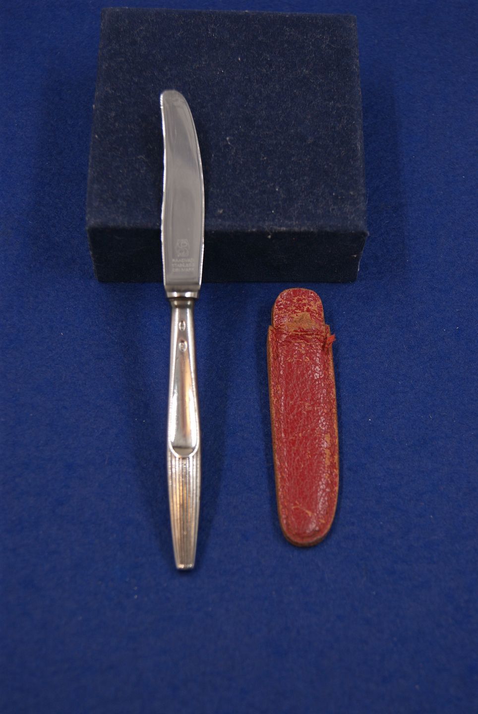 Travel knife or bag knife in a good used condition, and with red case with usage wear.