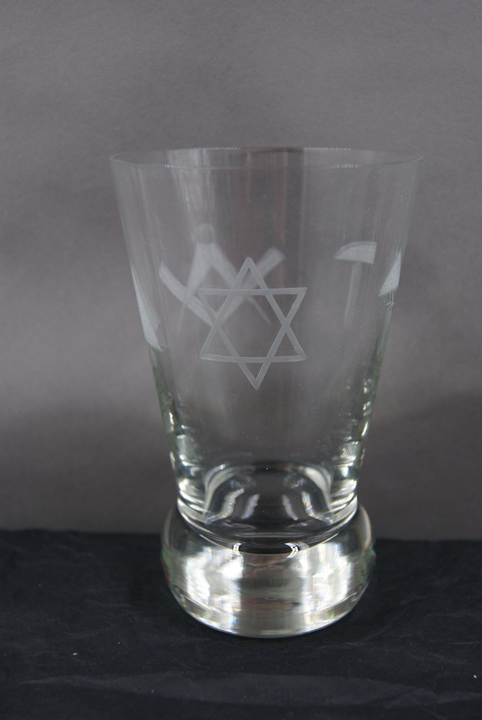 Danish freemason glasses, beer glasses engraved with freemason symbols, on an edge- cutted foot