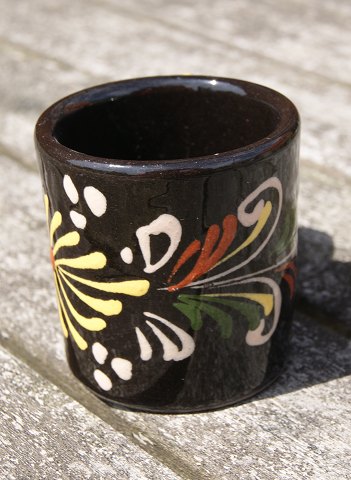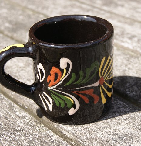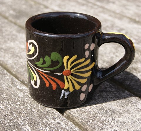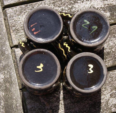 Swedish ceramics, set of 4 small mugs 6cm with black glaze and with decoration.