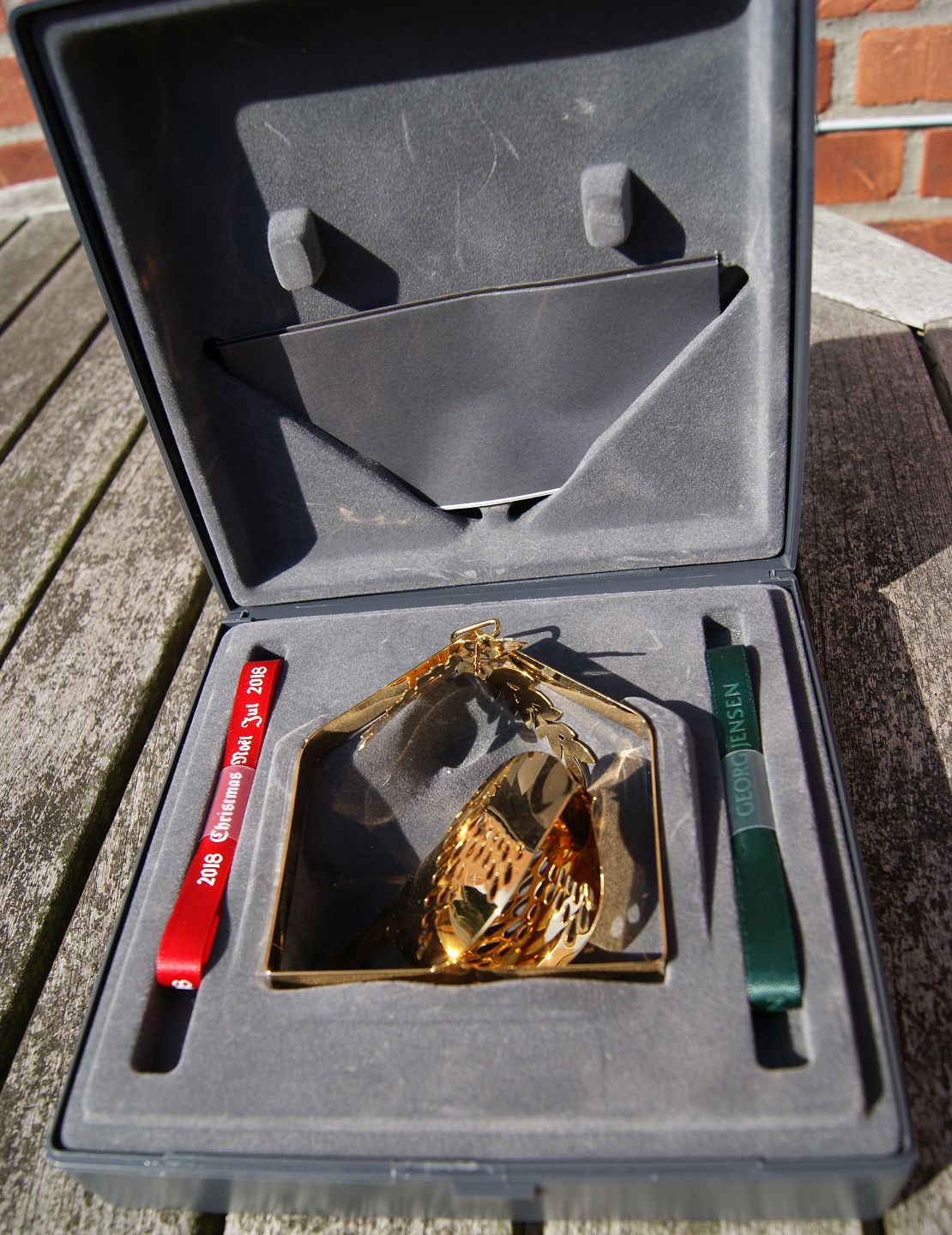Christmas Ornament 2018 Winter bird of gilt brass by Georg Jensen, Denmark.