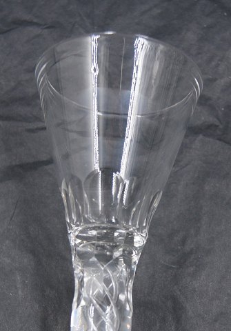 Tall Schnapps glass with grindings on cuppa and internal air spiral 23 cm