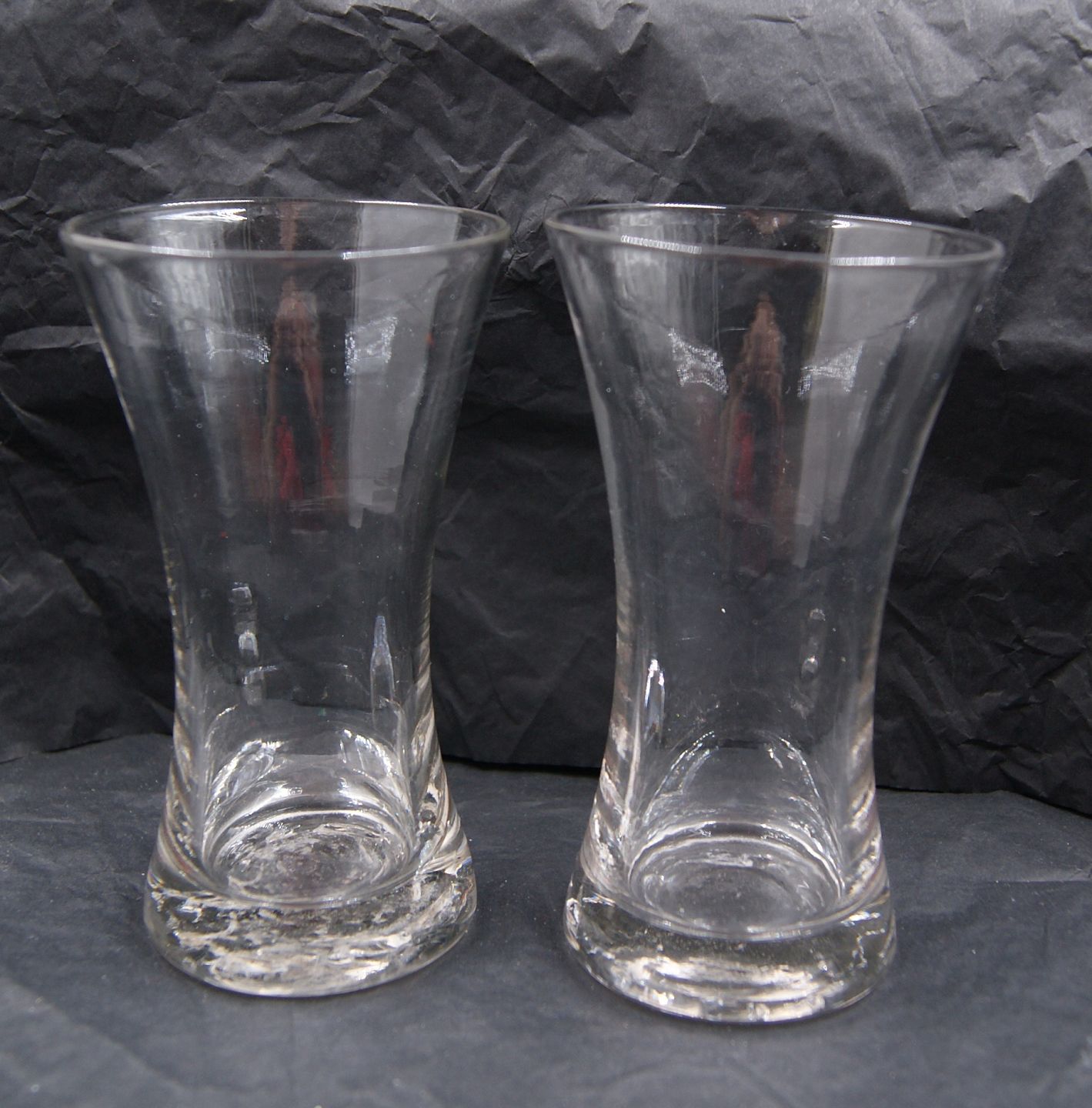 The glasses are in good condition, ground under the foot.